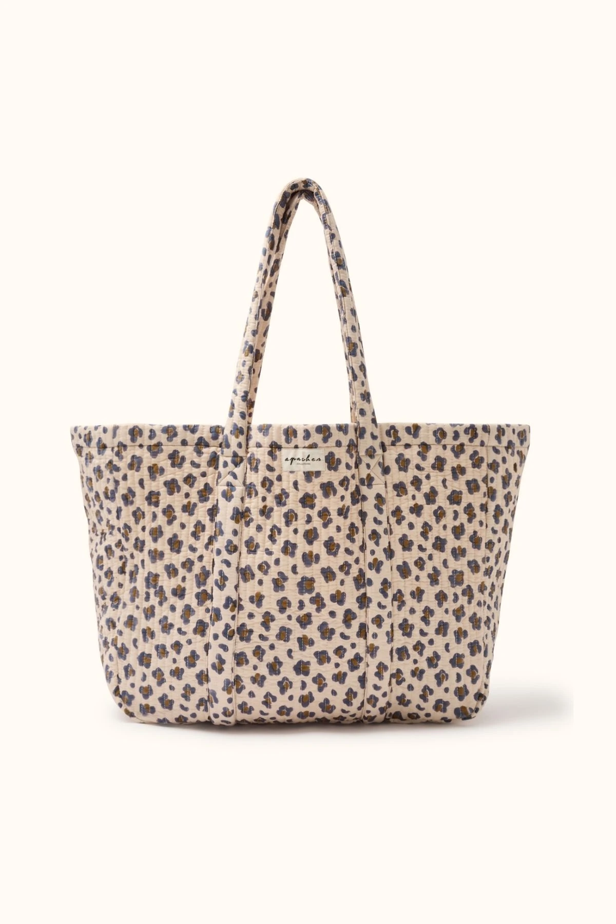 Le cabas SAHA se pare d’un imprimé léopard audacieux qui apporte caractère et style. Son grand format en coton matelassé permet de transporter tous vos essentiels avec aisance, que ce soit pour le marché, la plage ou les sorties en famille. Pratique et tendance, il devient un indispensable au quotidien.