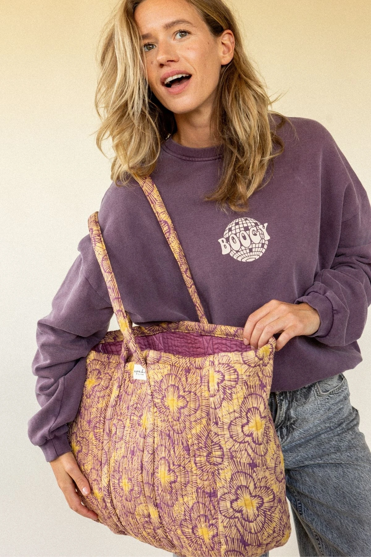 Apportez une touche de fraîcheur à vos sorties avec le cabas SAMBA fleuri en coton matelassé. Son motif graphique coloré et son grand format en font l’allié parfait pour transporter vos essentiels avec élégance et praticité, que ce soit au marché, à la plage ou lors de balades en famille.