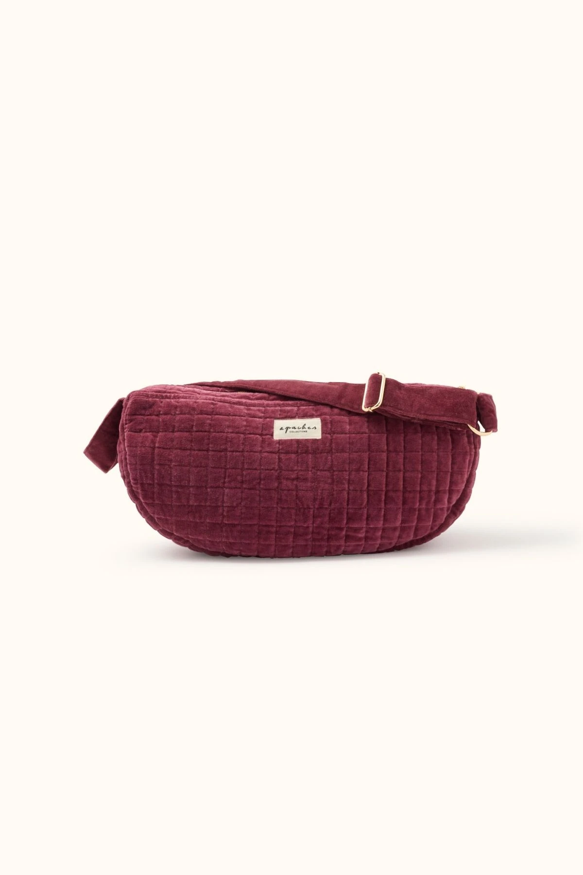 Le sac banane SHANTI en velours matelassé séduit par sa forme lune et son design graphique élégant. Sa bandoulière large et réglable garantit confort et praticité. Parfait pour transporter vos essentiels tout en gardant les mains libres, il apporte style et modernité à toutes vos sorties.