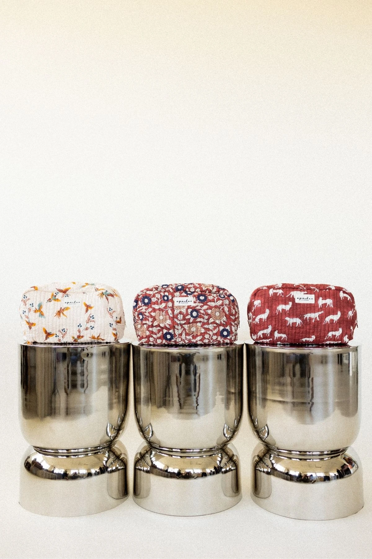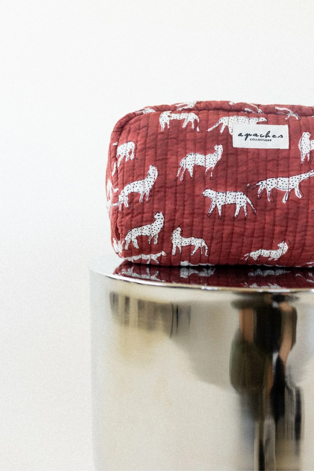 La grande trousse GAYANE Bengale Fire séduit par son imprimé audacieux et graphique. Spacieuse, elle accueille maquillage, accessoires ou affaires de bébé avec élégance. Confectionnée en coton matelassé, elle se glisse facilement dans un sac Buddha ou une valise pour rester organisée au quotidien.