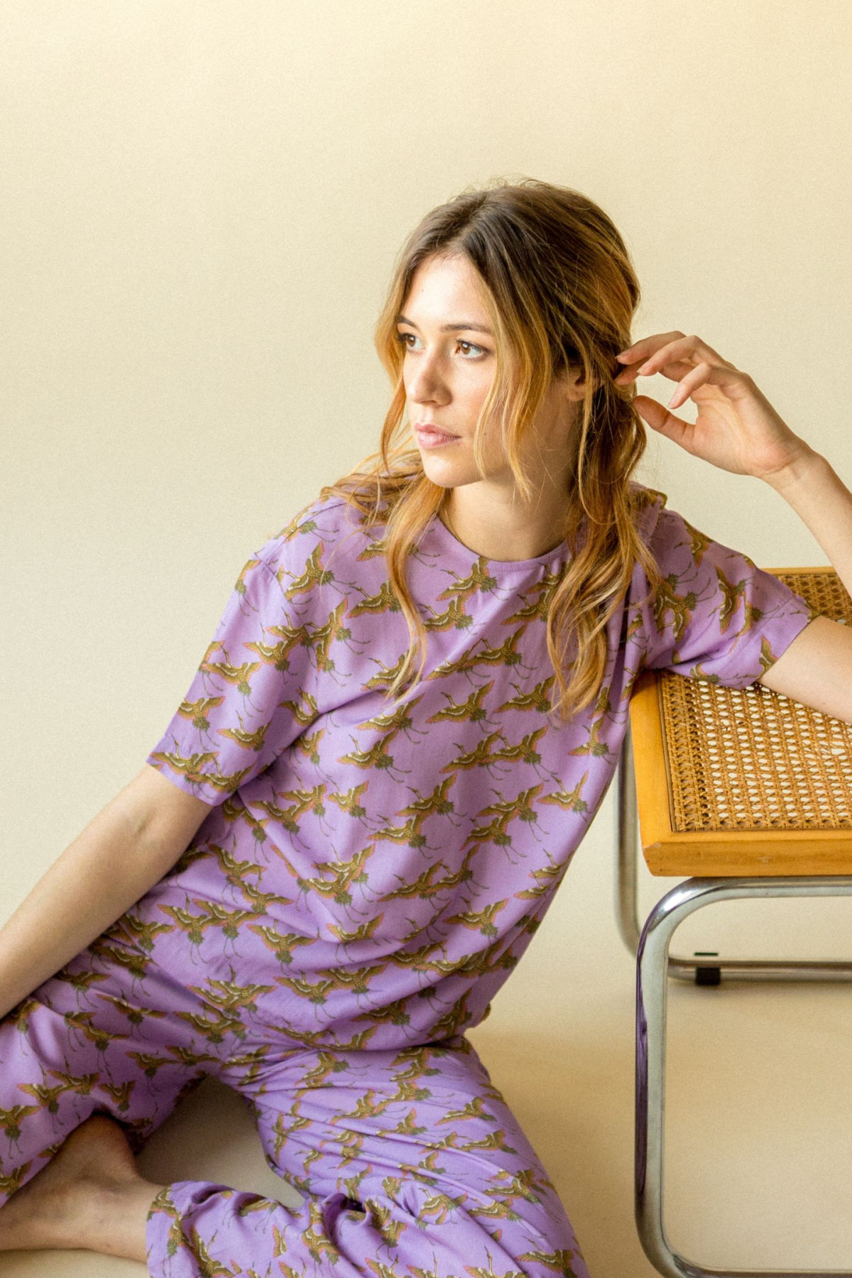 Découvrez notre nouvelle blouse pour femme à manches courtes, fluide et ample. On adore cette coupe tee-shirt et le détail de la fermeture éclair dans le dos qui vient sublimer cette coupe ! Optez pour l'imprimé "Héron" qui ajoutera de la modernité dans vos tenues !