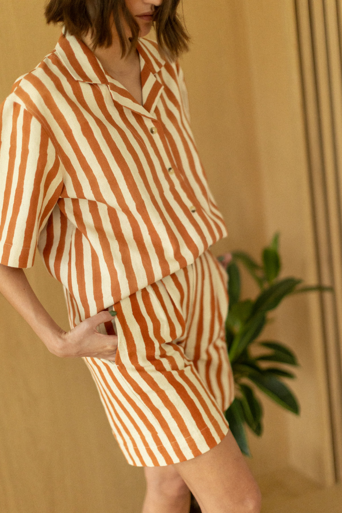 Découvrez Nalini, notre short taille haute, qui deviendra vite un incontournable de votre dressing ! Conçu dans un coton épais, vous allez adorer notre imprimé "Band" Terracotta. Associez-le simplement à un t-shirt pour un look décontracté ou crééez une tenue de caractère en le mariant avec notre blouse Pasham.