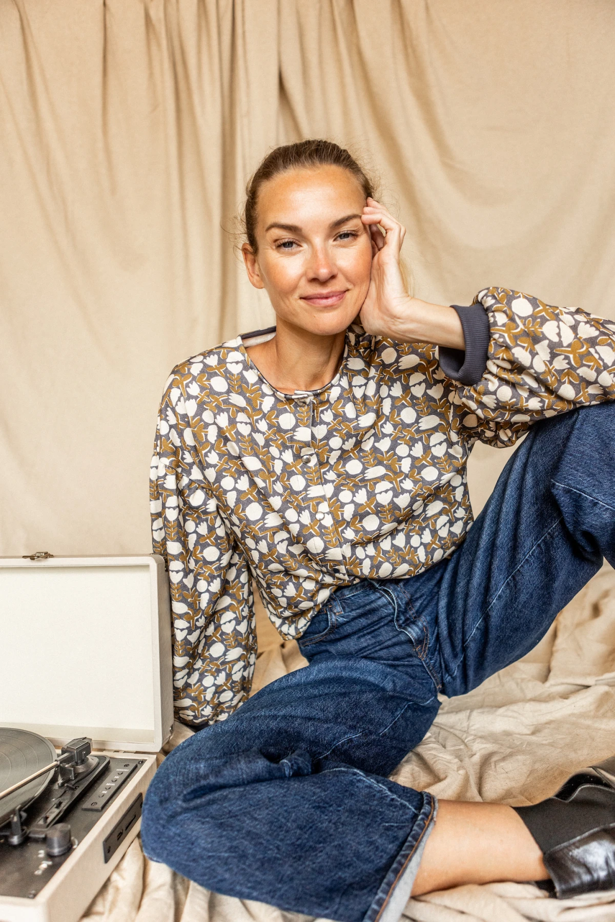 Optez pour style et confort avec notre blouse Bimi à l'imprimé Tulipe Orage. En molleton tout doux, vous allez adorer porter cette blouse esprit sweat, parfaite pour un look décontracté mais élégant !