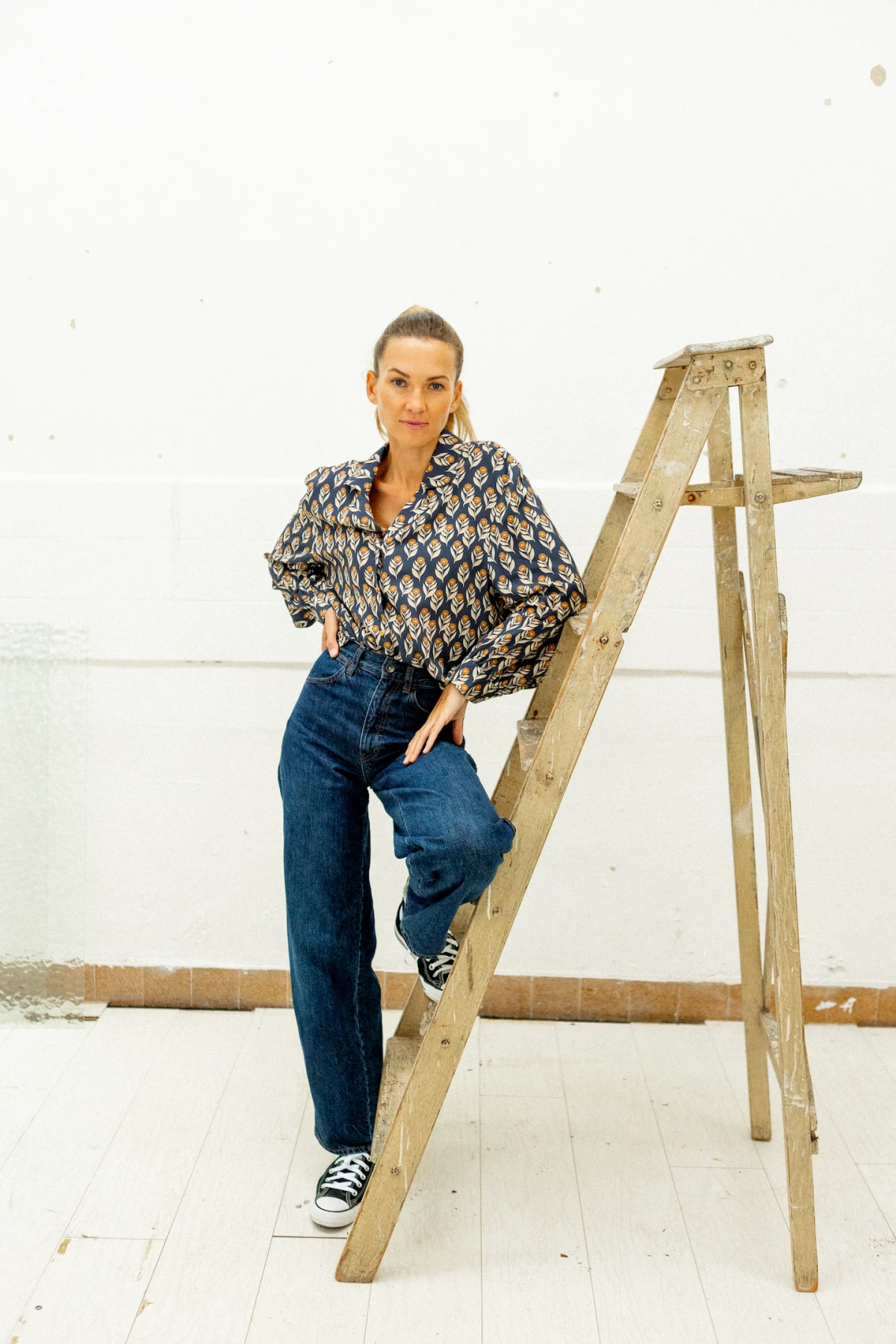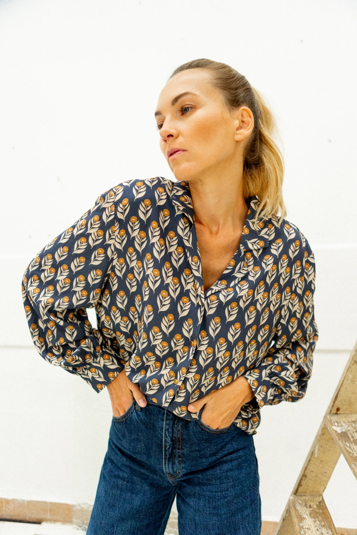 Notre blouse Balaji imprimée "Sirocco Indigo" est fluide et facile à porter en toute saison. Avec sa coupe esprit chemise, elle se marie parfaitement avec un jean pour un look casual.