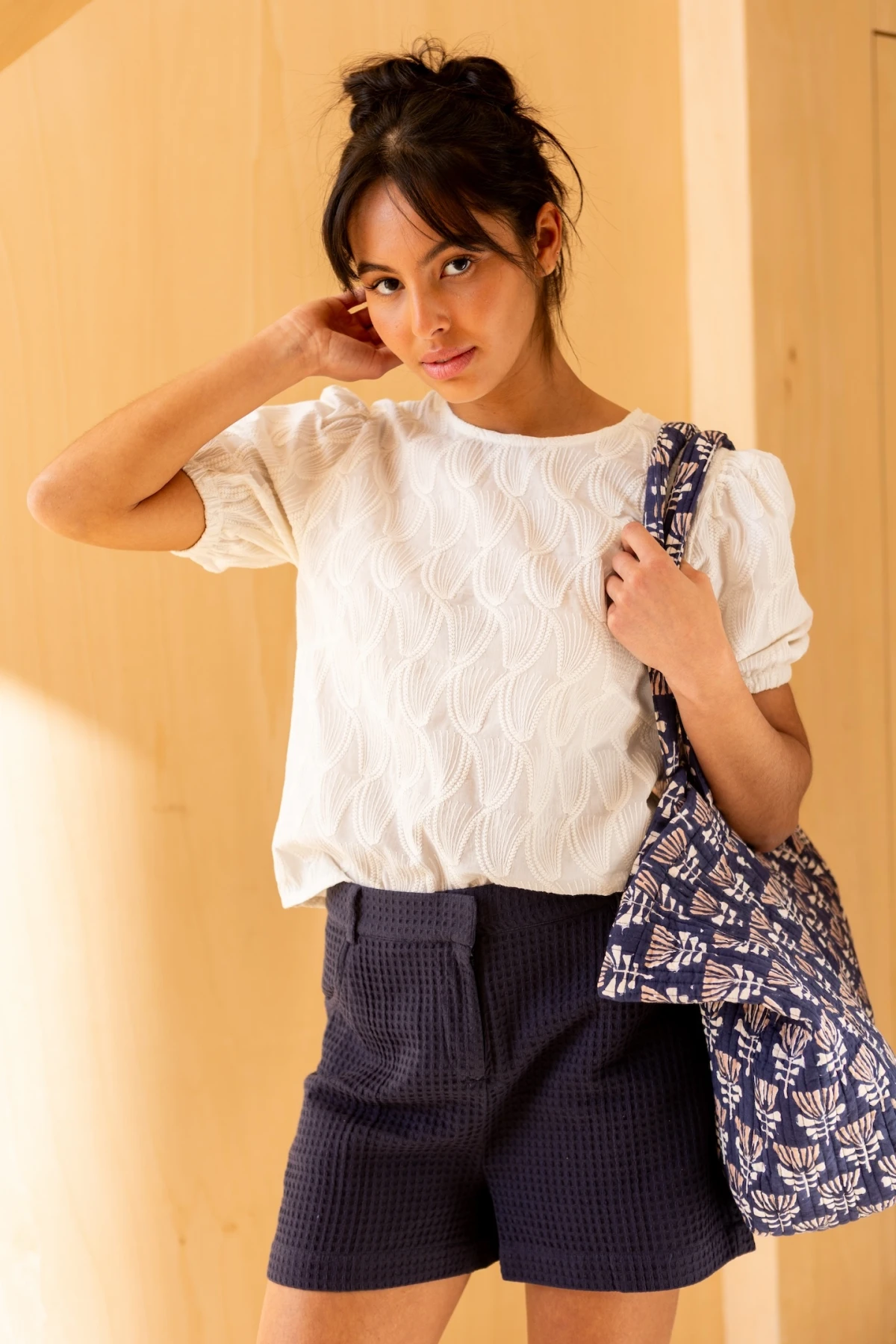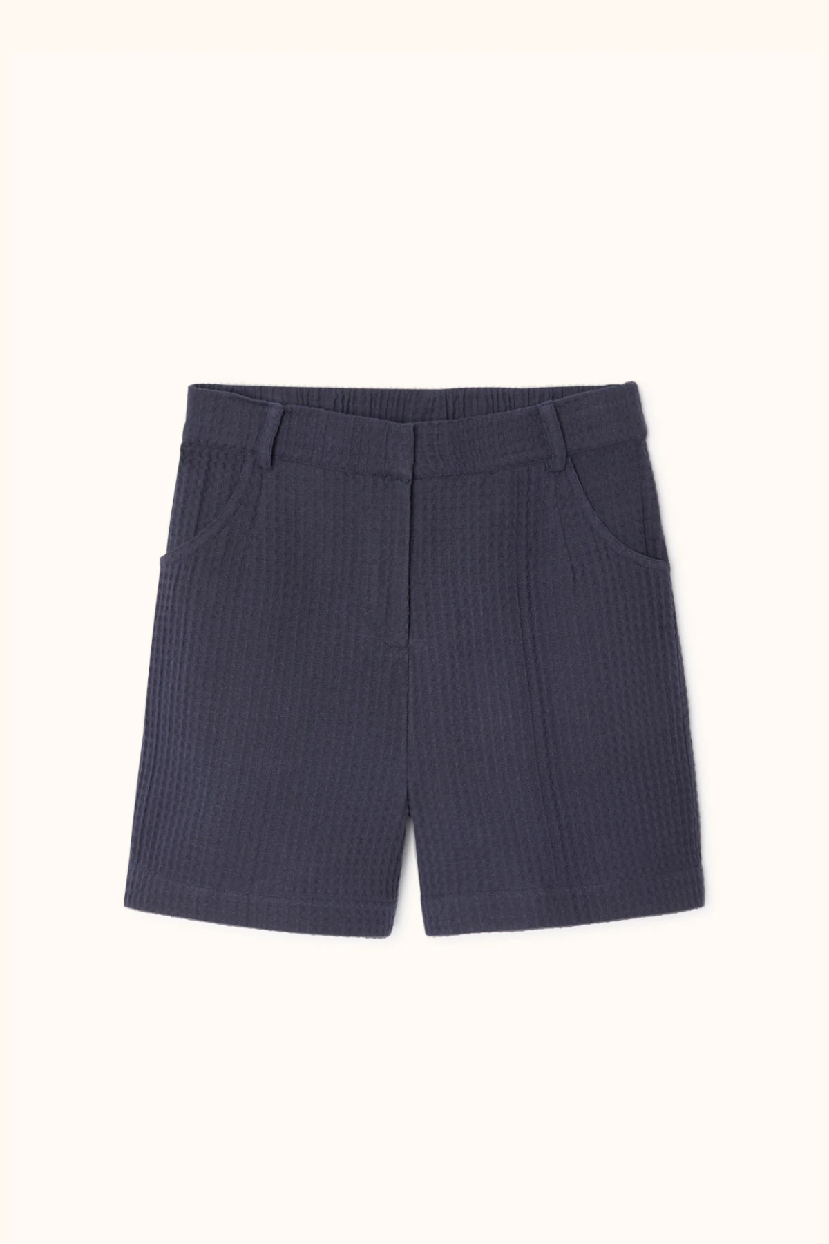 Notre short Holi sera idéal avec notre tee-shirt "Apaches". Il donnera un style minimaliste et élégant à chacun de vos looks grâce à son effet de matière en nid d'abeille !