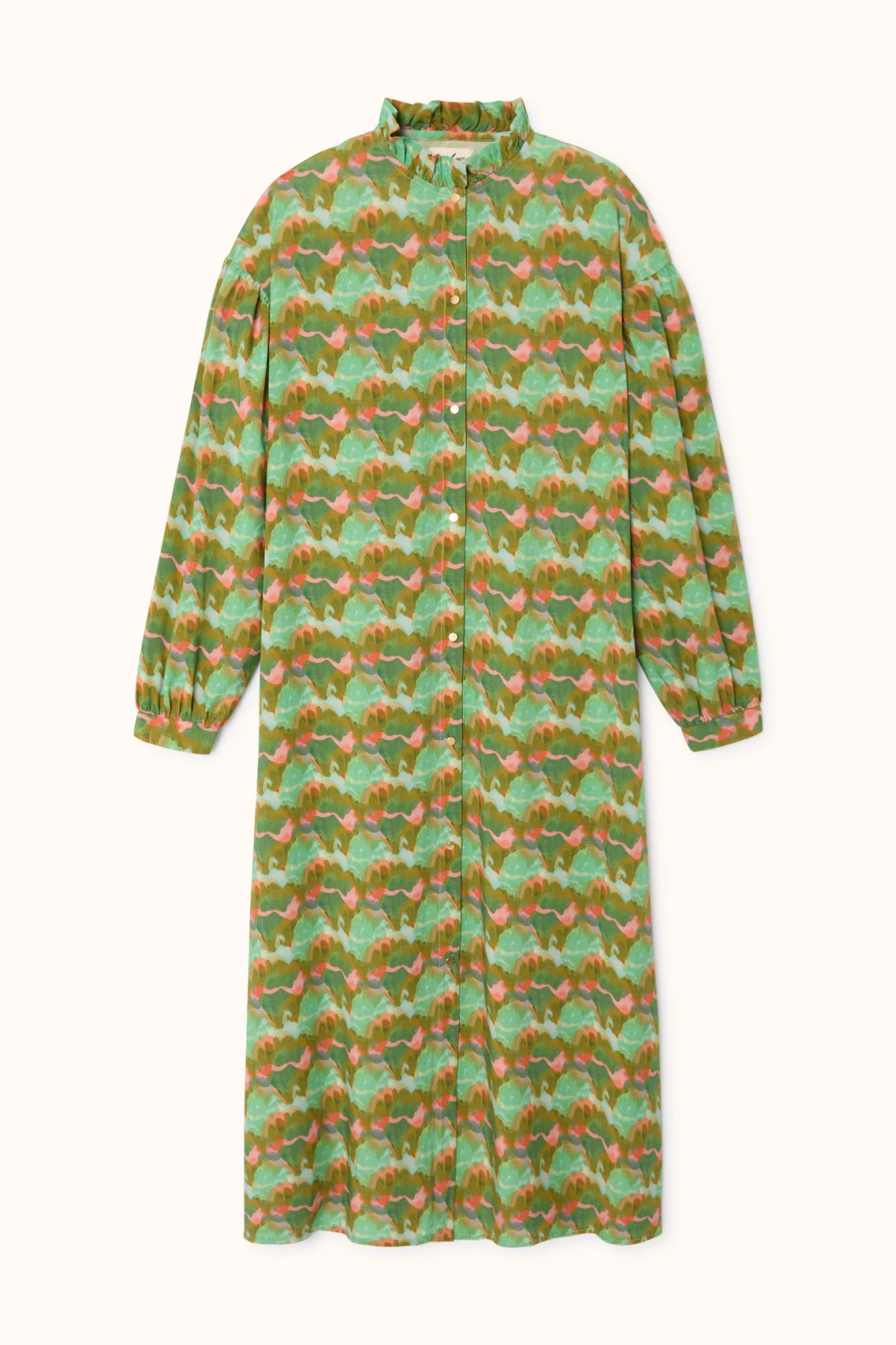 Craquez pour notre robe Prem imprimée Aquarelle ! Avec ses manches longues oversize et son col volanté, elle apporte une touche moderne et décontractée à votre style.