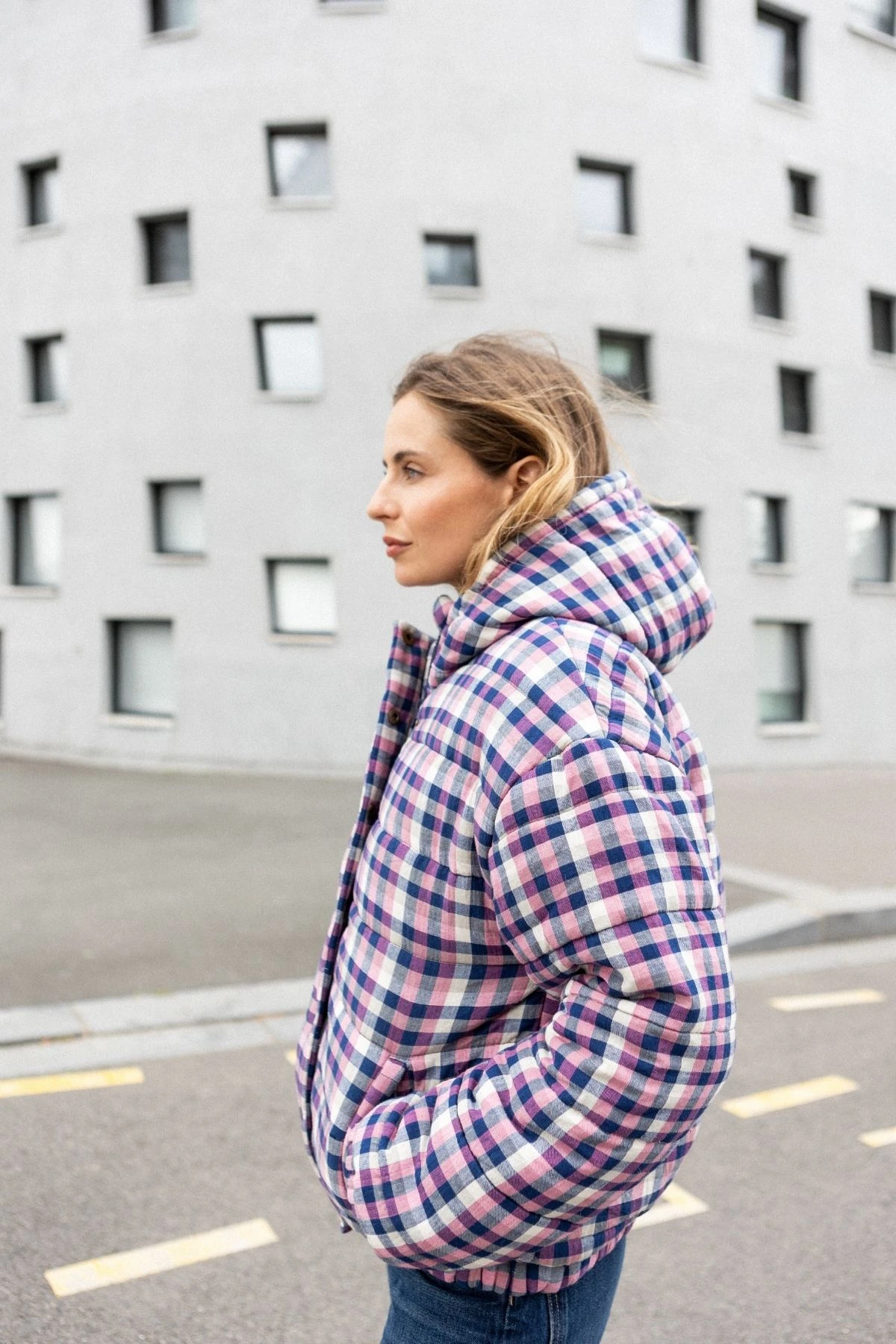 Elle a été pensée pour une silhouette ample et structurée : optez pour votre taille habituelle pour un rendu oversize assumé.