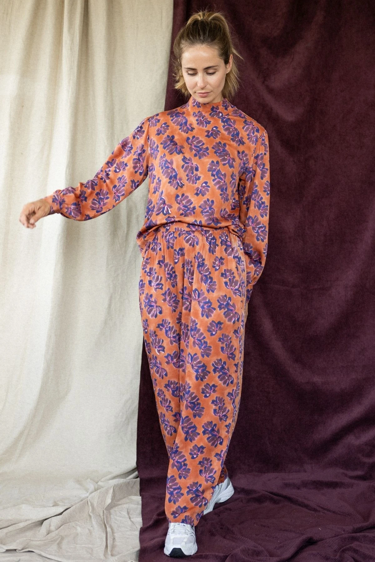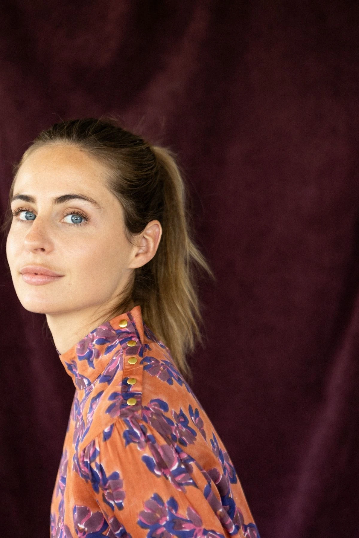 La blouse Bhumine en satin de viscose séduit par sa légèreté, sa brillance subtile et son tombé fluide. Apaches Collections l’habille d’un imprimé fleuri aux teintes douces, parfait pour l’automne-hiver. Son col montant boutonné et ses manches longues en font une pièce élégante et féminine, idéale en toute occasion.