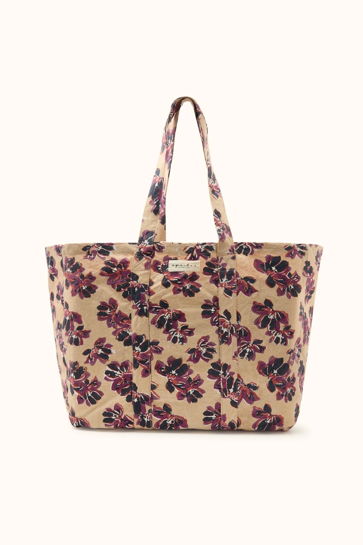 Adoptez le cabas Sambi en coloris Violeta Macadamia, confectionné en coton épais pour allier praticité et style. Sa légèreté et son grand format en font l’allié parfait pour vos courses, vos sorties à la plage, vos séances de sport ou les affaires des enfants. Son imprimé floral délicat apportera élégance et fraîcheur à vos looks du quotidien.
