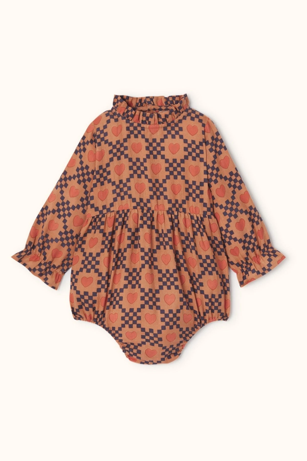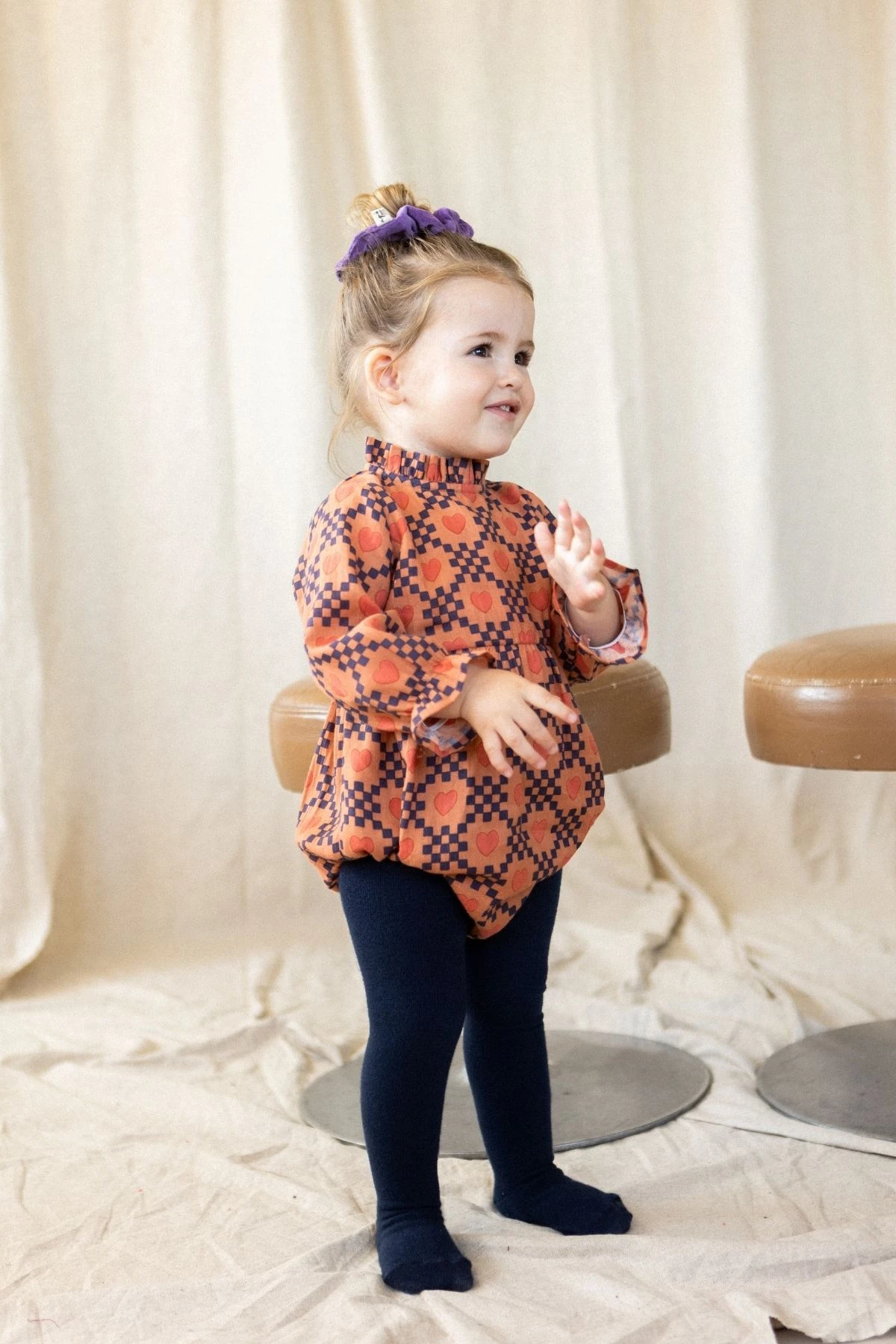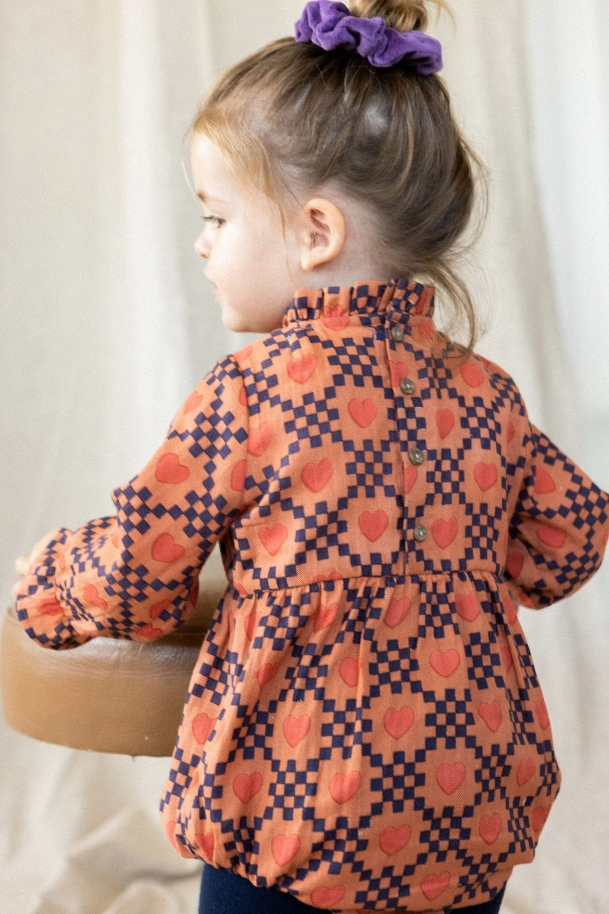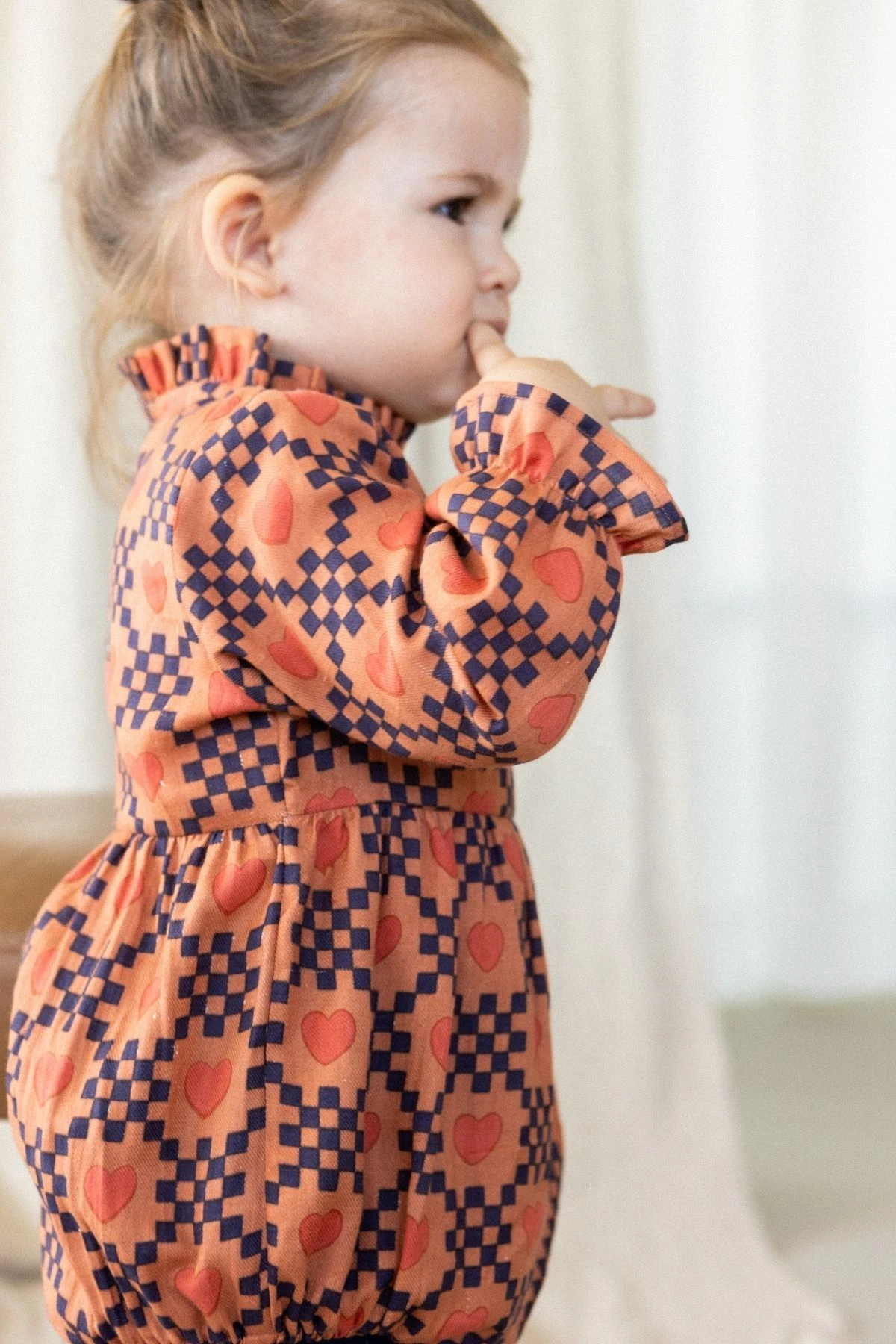 La barboteuse MILI, déclinée en coton lisse ou khadi, séduit par son col froncé légèrement montant, renforcé d’un biais intérieur pour un maintien parfait. Sa patte boutonnée au dos facilite l’enfilage, tandis que son bas et ses manches longues élastiqués créent un effet bouffant élégant et confortable.
