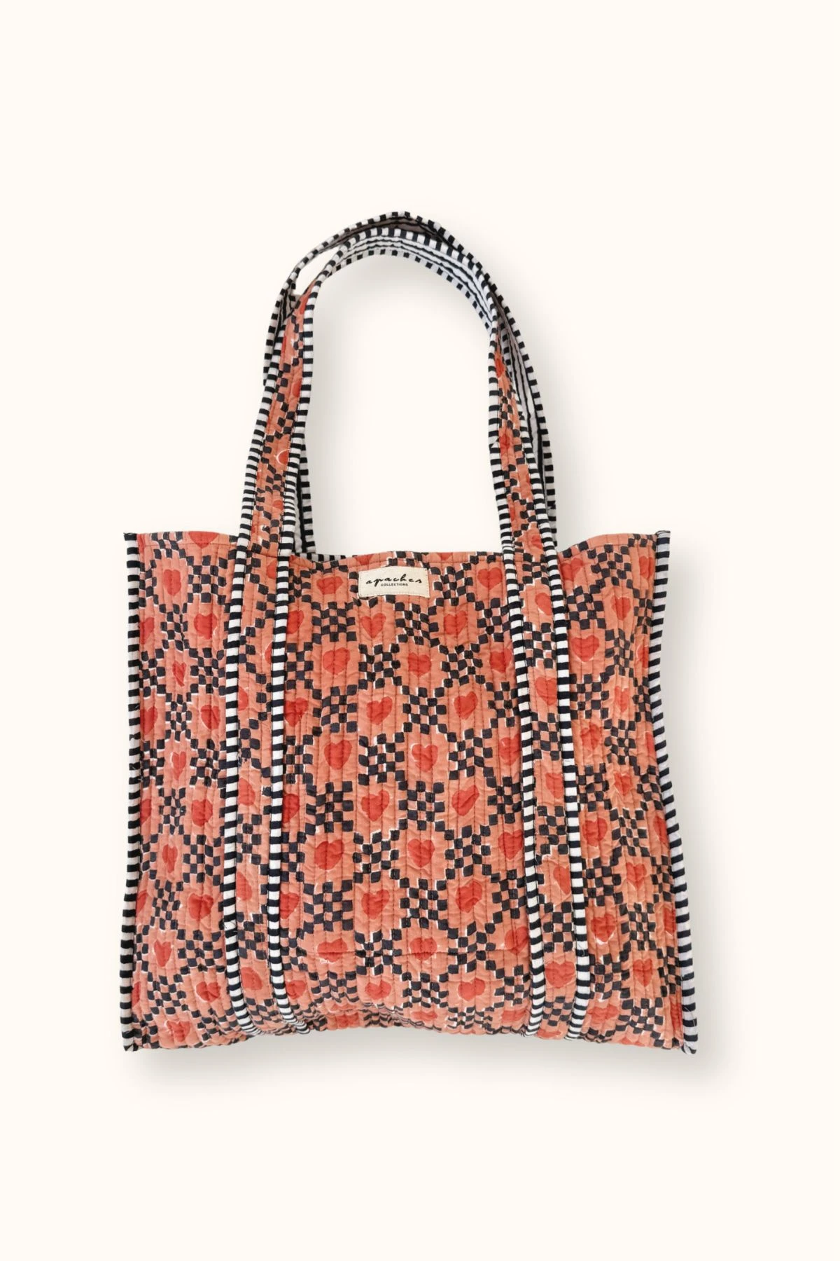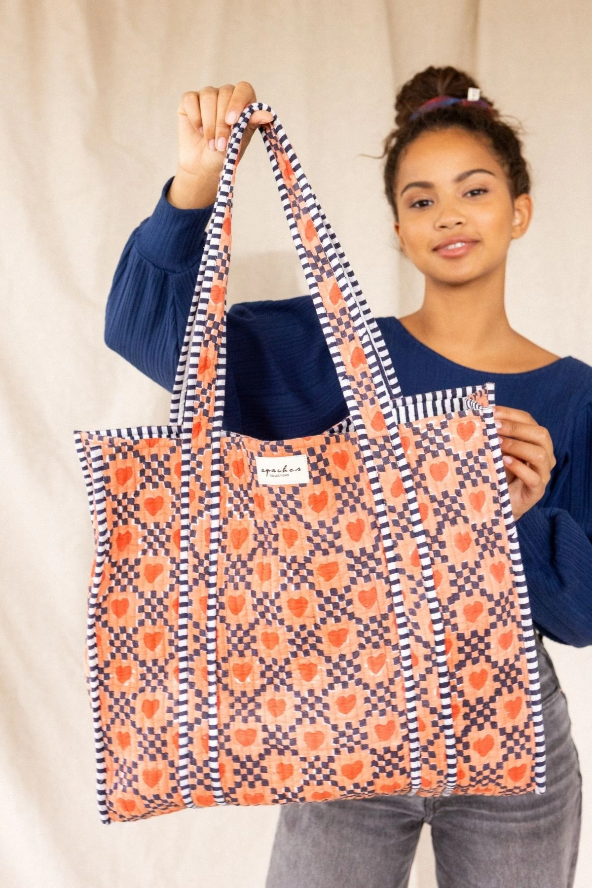 Le cabas Tokaree AMOR en coton matelassé allie douceur et modernité. Son imprimé graphique romantique apporte une touche unique à votre style. Grand format avec anses confortables, il est parfait pour courses, sorties ou travail, alliant élégance et praticité pour vous accompagner au quotidien avec charme.