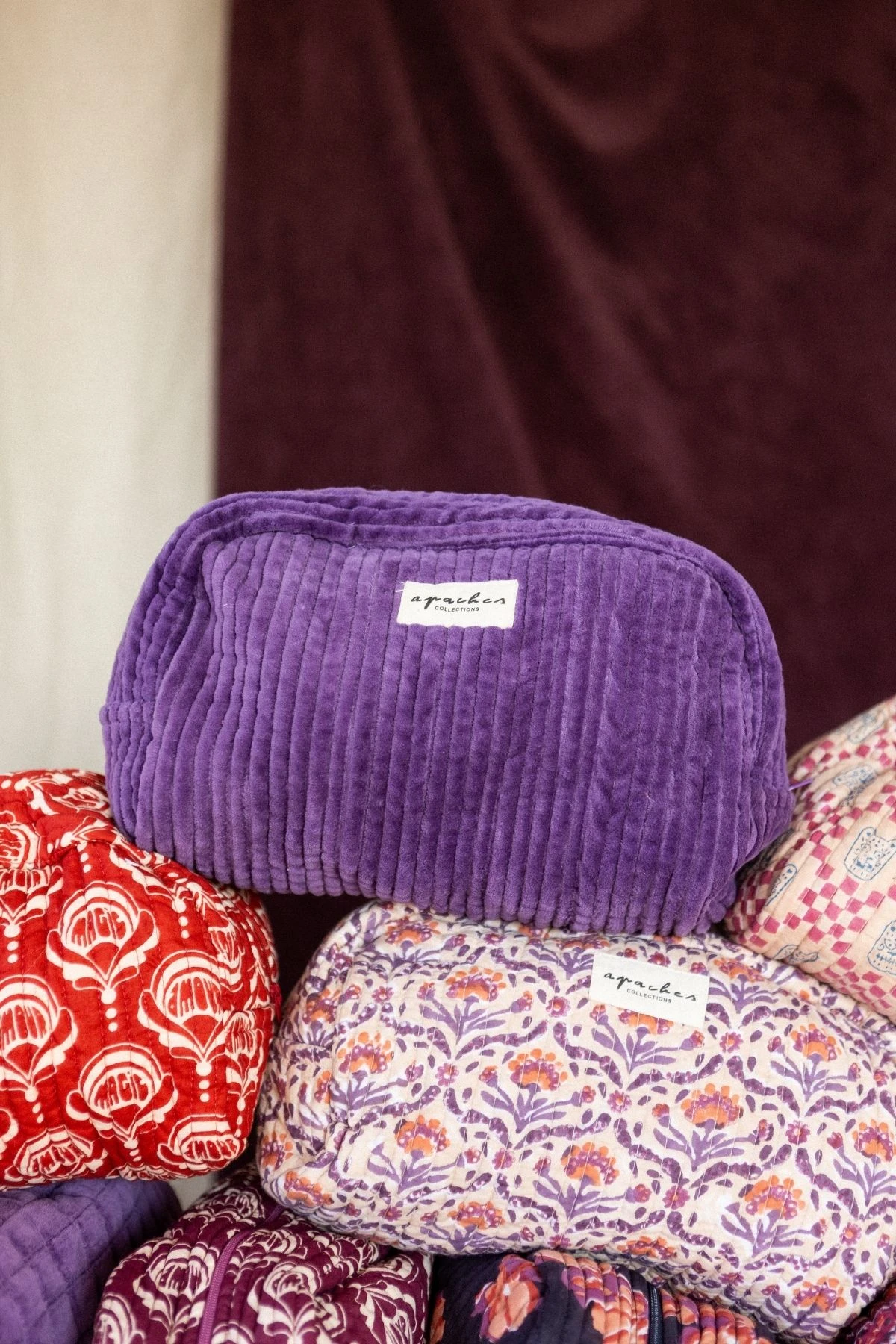 La trousse Gayane en velours côtelé matelassé séduit par sa texture douce et son look élégant. Son grand format est parfait pour organiser maquillage, soins, accessoires ou affaires de bébé. Idéale comme trousse de toilette ou de voyage, elle allie style, praticité et confort pour un quotidien bien organisé.