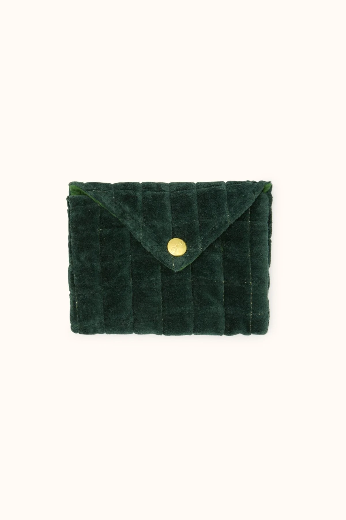 Laissez-vous séduire par l’enveloppe Ravi en velours lisse vert forêt, au coloris profond et sophistiqué. Sa texture douce et son format compact en font l’accessoire idéal pour ranger bijoux, écouteurs ou petits trésors. Élégante et pratique, elle s’invite dans tous vos sacs et se transforme en cadeau raffiné à souhait.