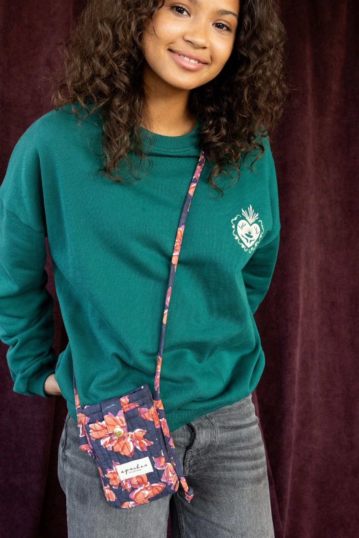 Nouvelle pépite signée Apaches Collections ! L’étui téléphone Kolkata en coloris VIOLETA allie protection et style avec son coton matelassé et sa fermeture pression. Sa poche avant accueille vos indispensables. À porter en bandoulière ou à glisser dans un sac pour un quotidien tout en praticité.