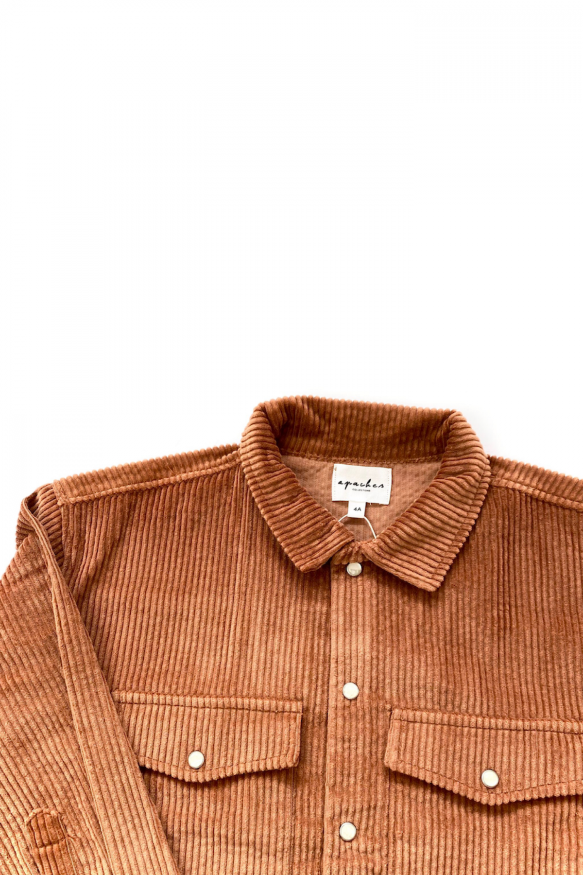 Blouse en velours côtelé avec une fermeture par boutons-pression nacrés devant. Modèle avec poches de poitrine à rabat. Finition boutonnée au poignet. Peut se porter en sur-veste en choisissant la taille supérieure.
