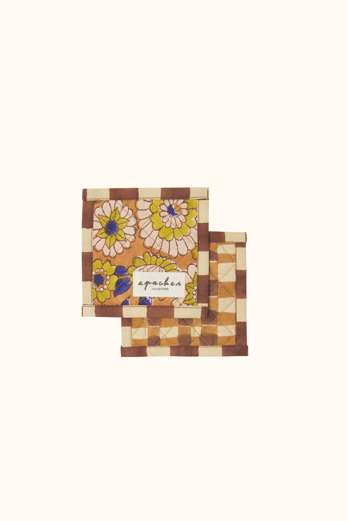Découvrez nos dessous de verre Assami, parfaits pour des tables accueillantes et chaleureuses. Réversibles, vous allez adorer ces imprimés fleuris d'un côté et graphiques de l'autre pour une table unique jusque dans les moindres détails !