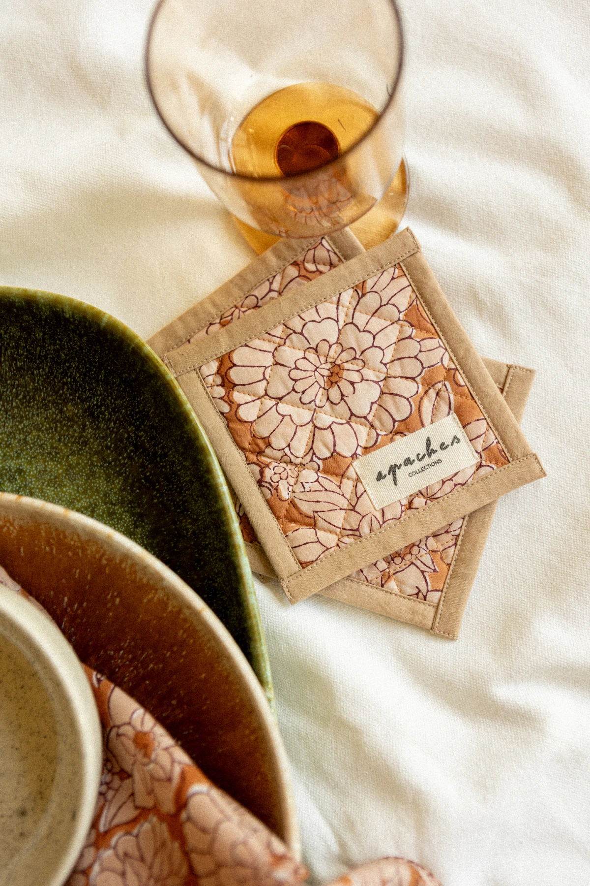 Découvrez nos dessous de verre Assami, parfaits pour des tables accueillantes et chaleureuses. Réversibles, vous allez adorer ces deux coloris fleuris pour une table unique jusque dans les moindres détails !