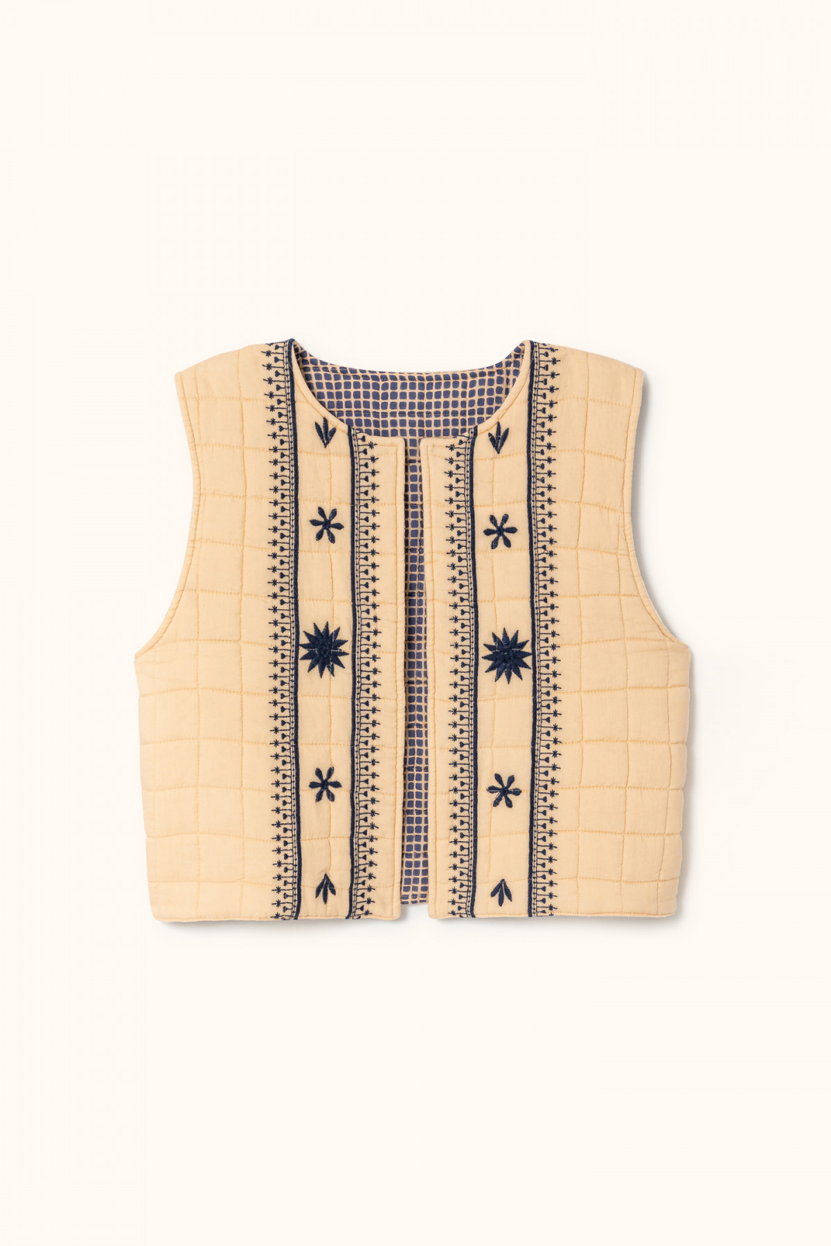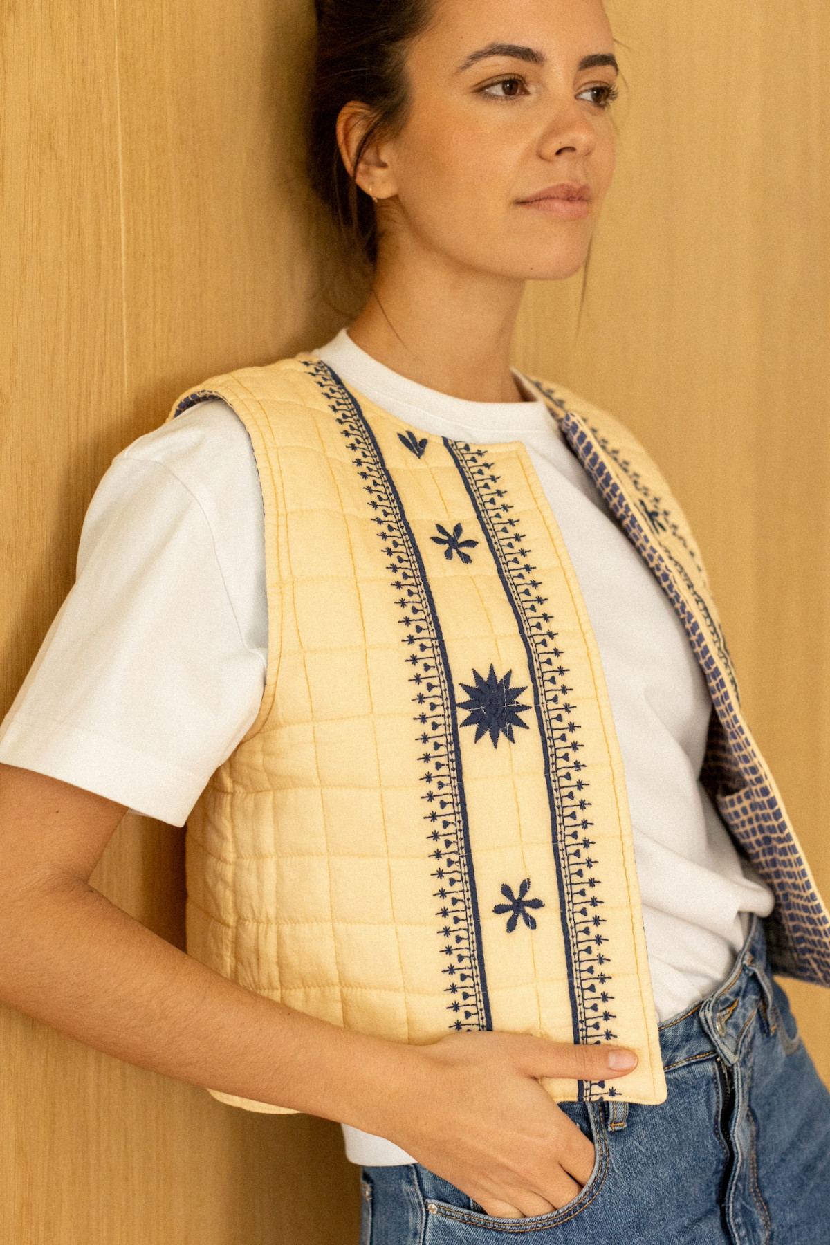 Gilet sans manche matelassé en coton, on ne présente plus notre gilet Sakari tant aimé ! Réversible, notre gilet sans manche s'accordera facilement avec toutes vos tenues de la plus simple à la plus colorée.