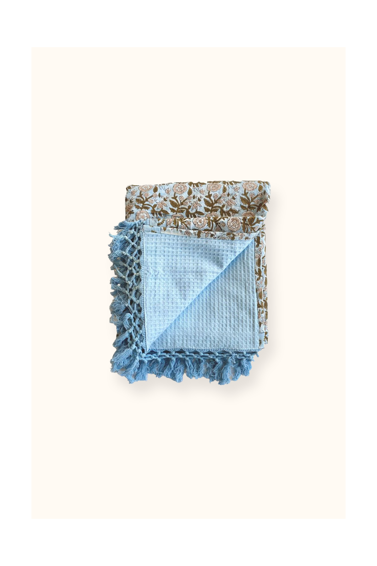 Notre fouta Kota est confectionnée artisanalement grâce à la technique artisanale du block-print indien. Ses couleurs sont réalisées à partir de pigments naturels. Chaque fouta est unique, cette confection manuelle peut entraîner de légères variations de couleurs d'une série à l'autre et certaines "irrégularités" dont nous aimons le charme.