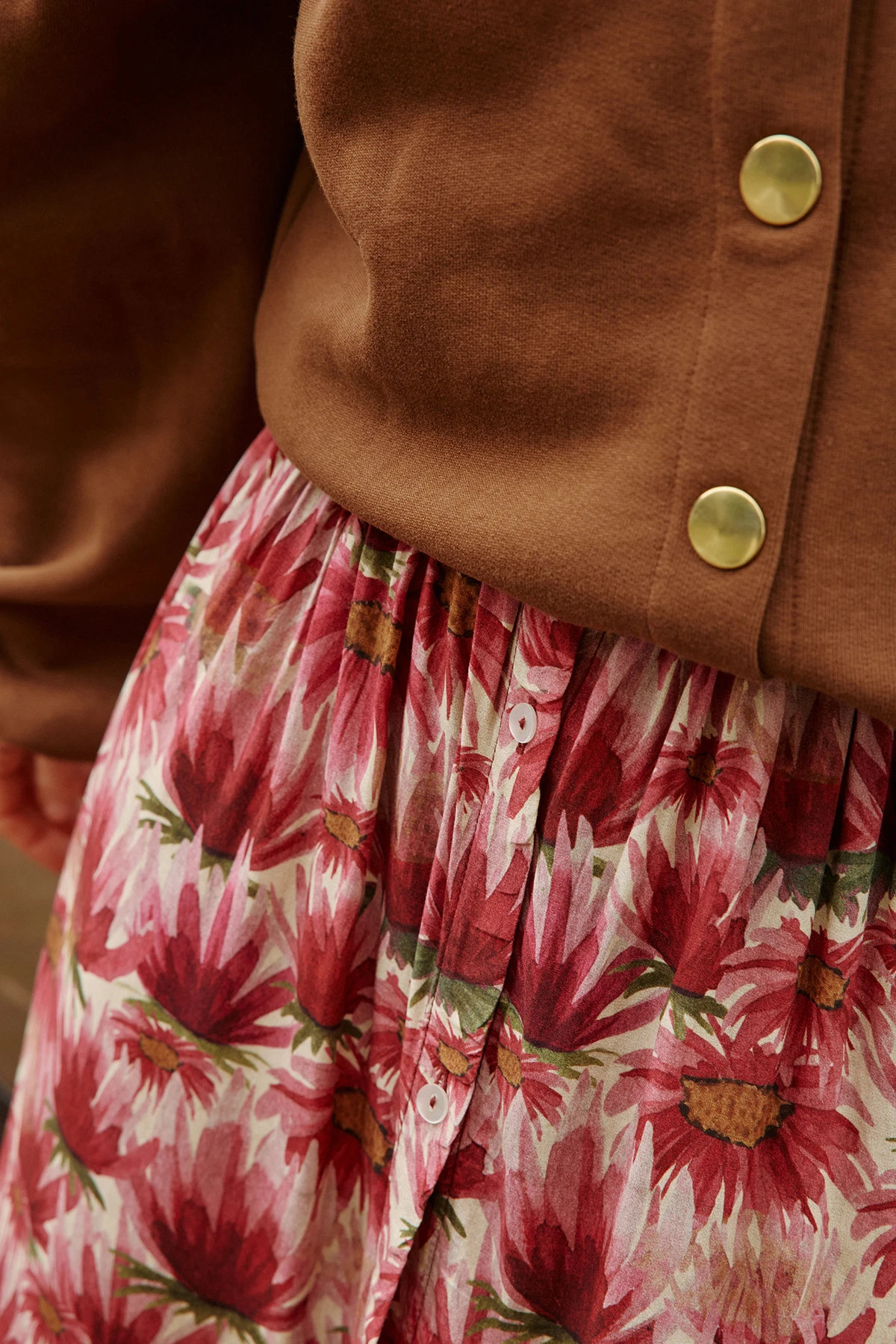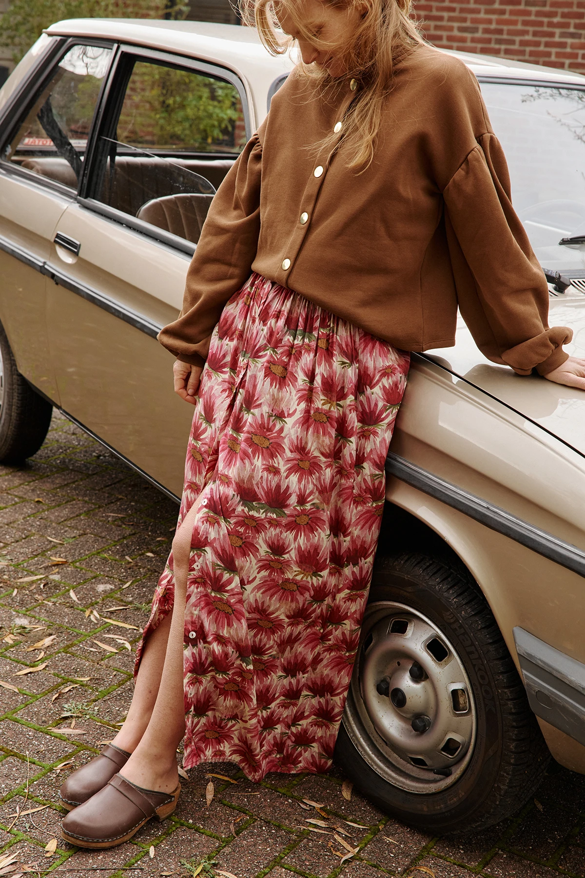 Fluide et raffinée, la jupe longue NEELA en viscose offre un tombé élégant et aérien. Les boutons-pression dorés sur l’ouverture avant ajoutent une touche lumineuse et moderne. La ceinture froncée structure la taille et crée un volume harmonieux pour un look sophistiqué et féminin.