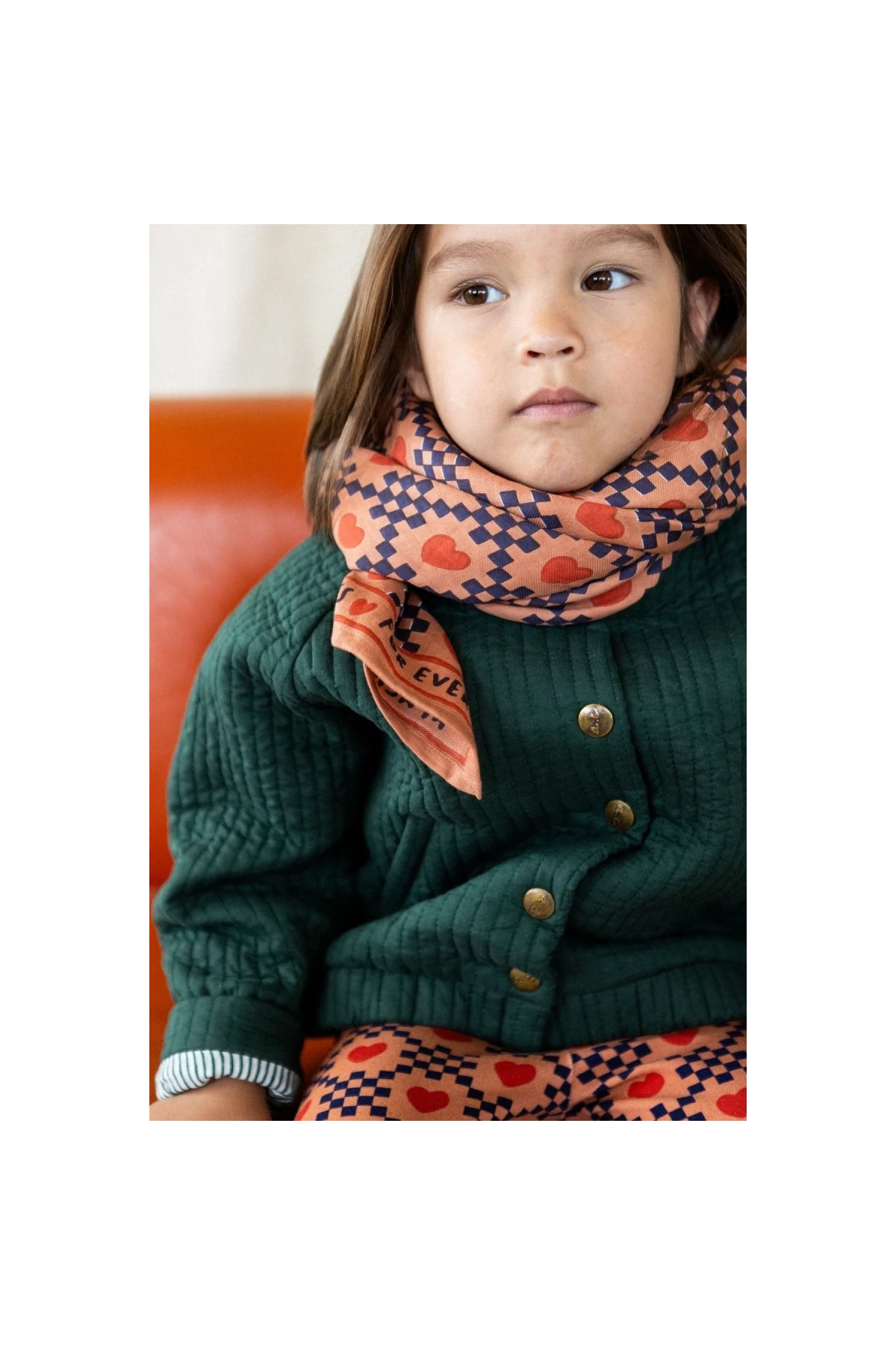 Illuminez votre style avec le foulard Latika AMOR en coton doux ! Son motif cœur moderne associé à un damier original lui confère un charme unique. Adapté aux petits comme aux grands, il deviendra vite un essentiel de votre garde-robe. Plusieurs coloris disponibles : quel sera votre coup de cœur ?