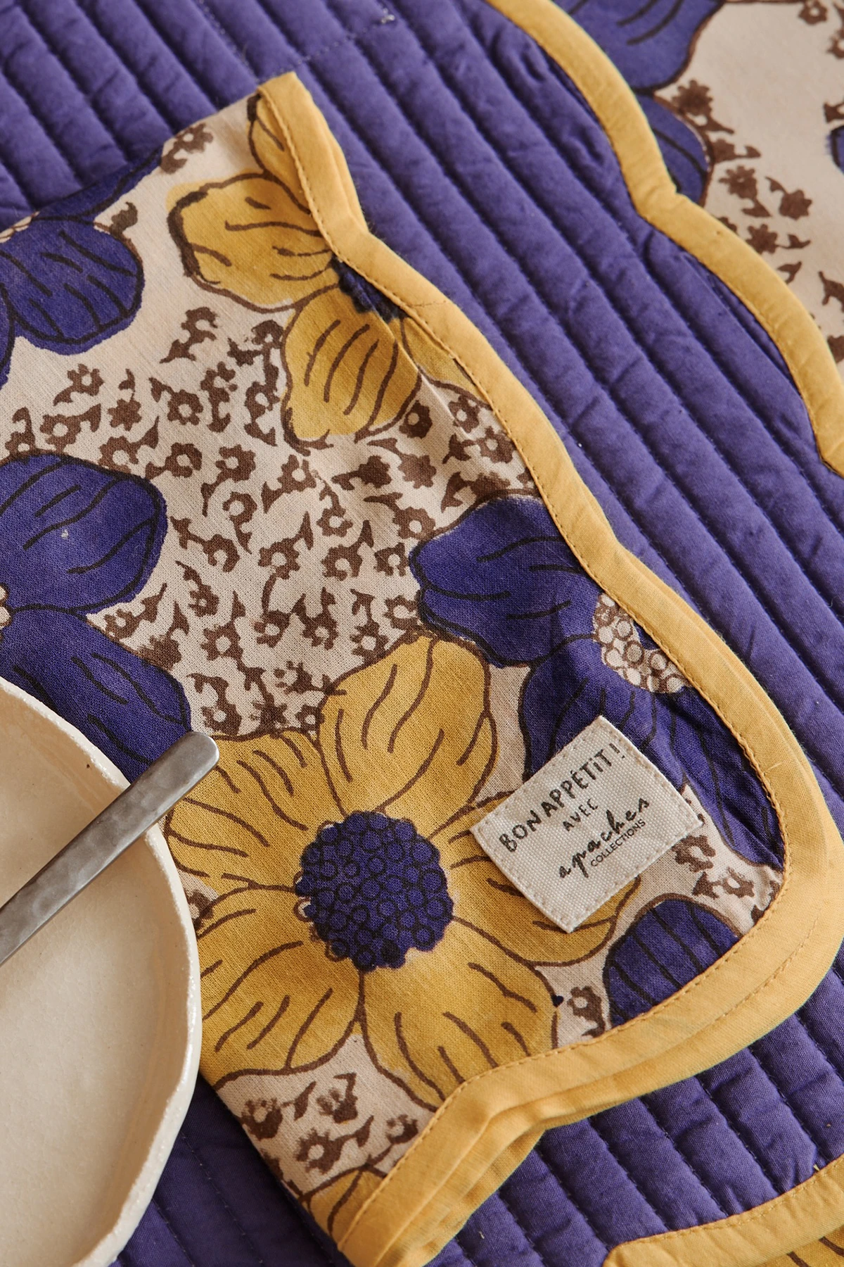 Elle est confectionnée de manière artisanale grâce à la technique du block-print. Chaque pièce est unique, cette confection manuelle peut entraîner de légères variations de couleurs d'une série à une autre et certaines "irrégularités" dont nous aimons le charme.