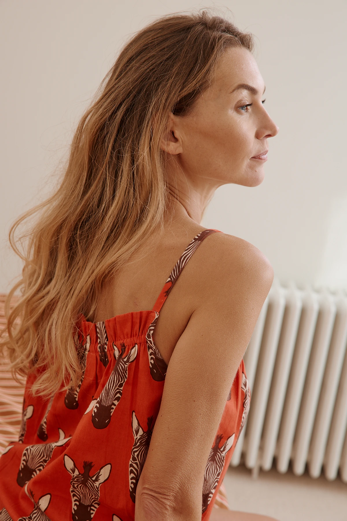 Découvrez le pyjama PANDNAY, composé d’un haut à fines bretelles avec encolure élastiquée effet froncé pour un tombé léger et féminin. Les emmanchures sont renforcées par un biais intérieur et l’ourlet est joliment surpiqué. Le short à taille élastiquée assure confort et liberté de mouvement pour des nuits douces et agréables.