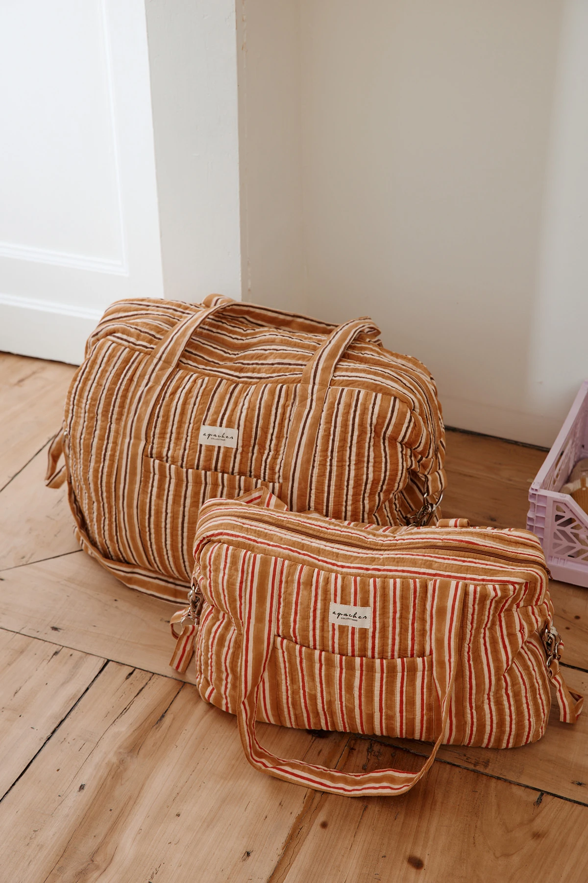 Le grand sac à langer THAILA séduit par son design matelassé élégant et sa grande capacité. Doté de multiples compartiments intérieurs et d’une poche plaquée extérieure, il offre une organisation optimale. Son passant trolley au dos permet de le fixer facilement sur une valise cabine, idéal pour les voyages en famille.
