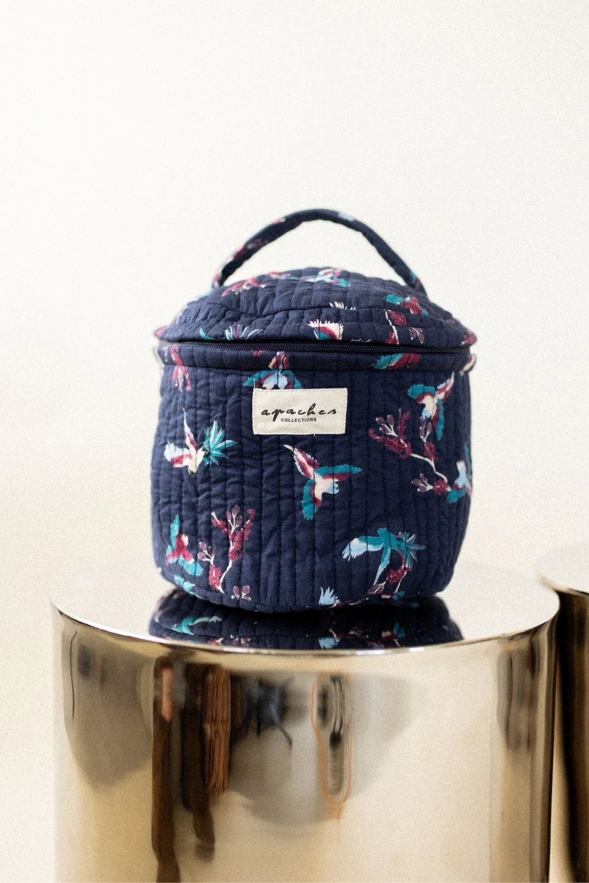 La trousse de toilette TARA Cerisier Navy séduit par son imprimé floral délicat sur fond bleu. Pratique avec sa poignée et son zip sécurisé, elle accueille maquillage, accessoires et petits essentiels. Compacte et élégante, elle devient l’alliée parfaite pour vos déplacements avec raffinement.