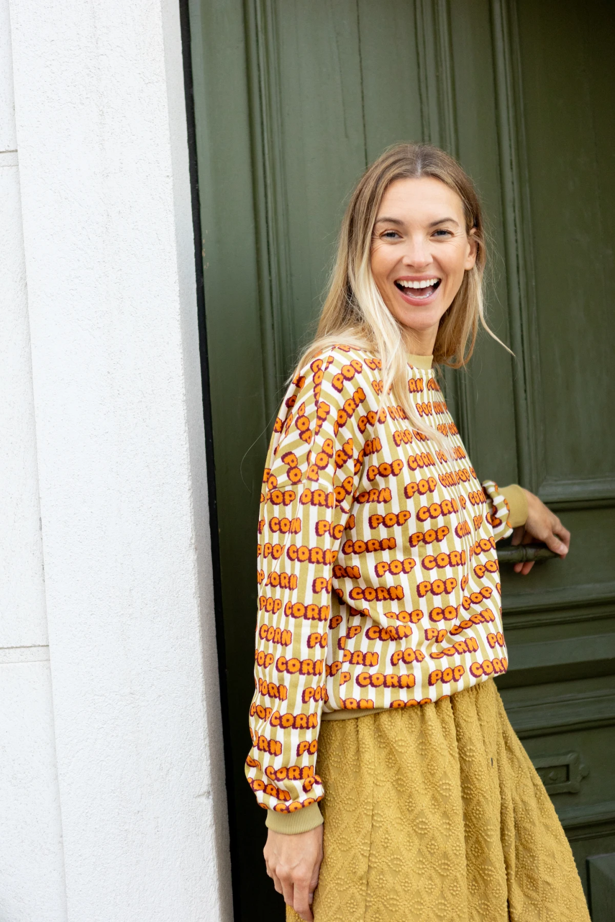 Apportez une dose de confort et de caractère à votre dressing avec le sweat Nirala. Sa coupe loose offre une allure décontractée et tendance, parfaite pour un look moderne et audacieux. Confectionné en coton molletonné, il est agréable à porter et cet imprimé Pop Corn Olive ajoutera une touche de caractère à votre quotidien !