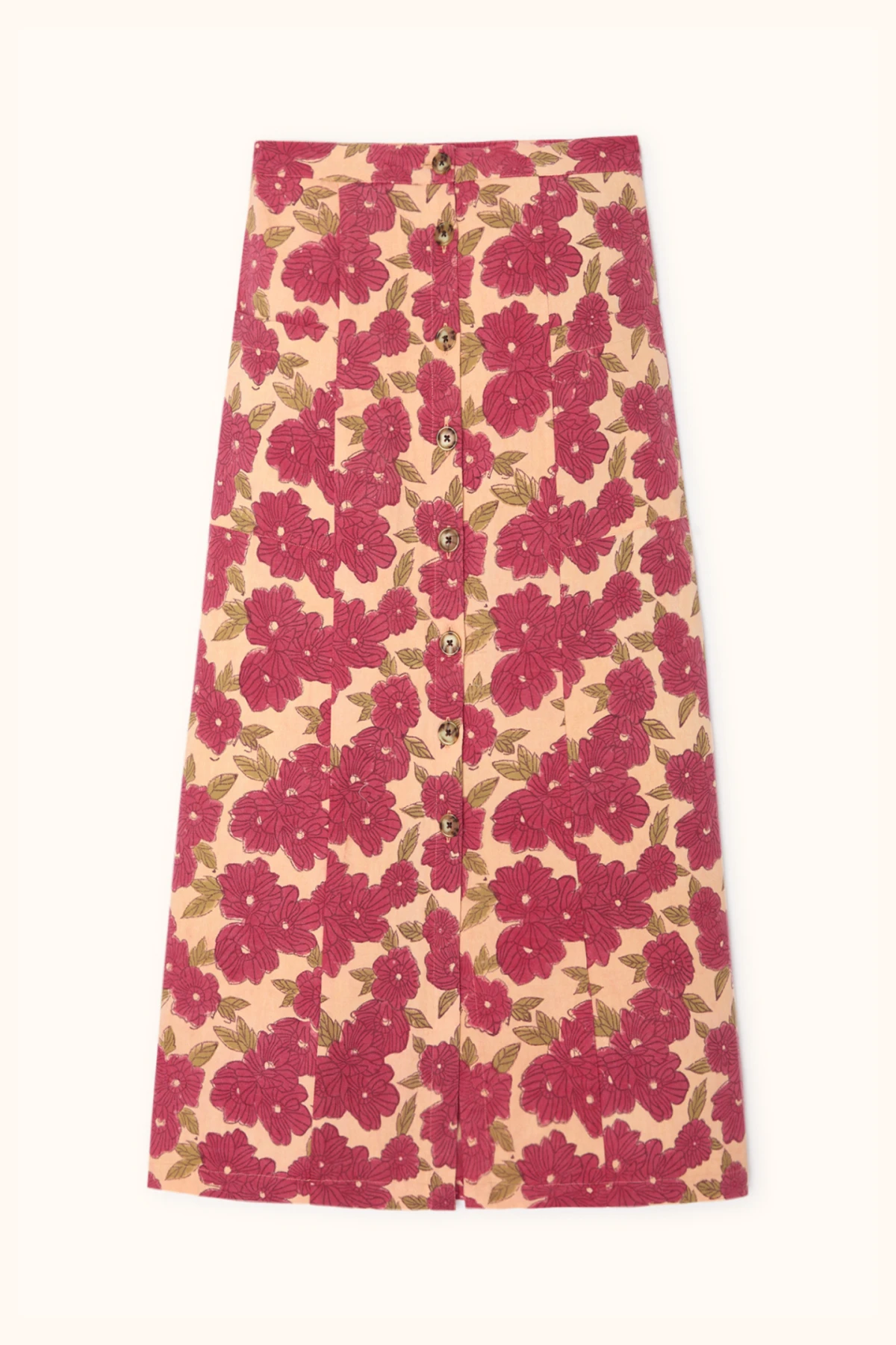 Adorée la saison précédente, notre jupe Gotama est de retour dans un imprimé fleuri "Bloom" Macadamia. Longue et boutonnée à l'avant, elle est à la fois stylée et élégante. Elle sera un véritable indispensable pour vos looks estivaux.