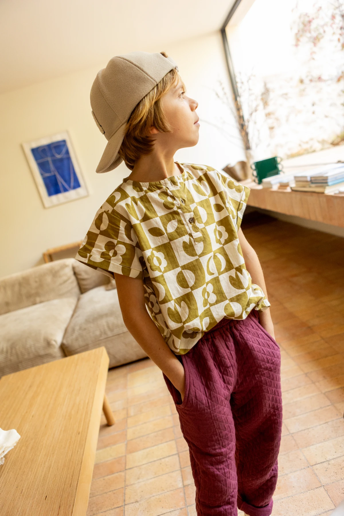 Apportez une touche stylée à la tenue de vos kids avec notre blouse Mani en coton. Avec ses manches courtes et son imprimé Damier moderne, elle allie style et confort.