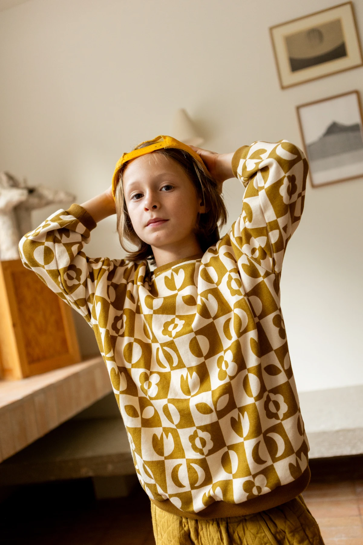 Notre sweat loose Sahari imprimé "Damier" Tobacco sera parfait pour un look confortable et stylé. En coton molletonné doux, votre mini ne voudra plus le quitter !