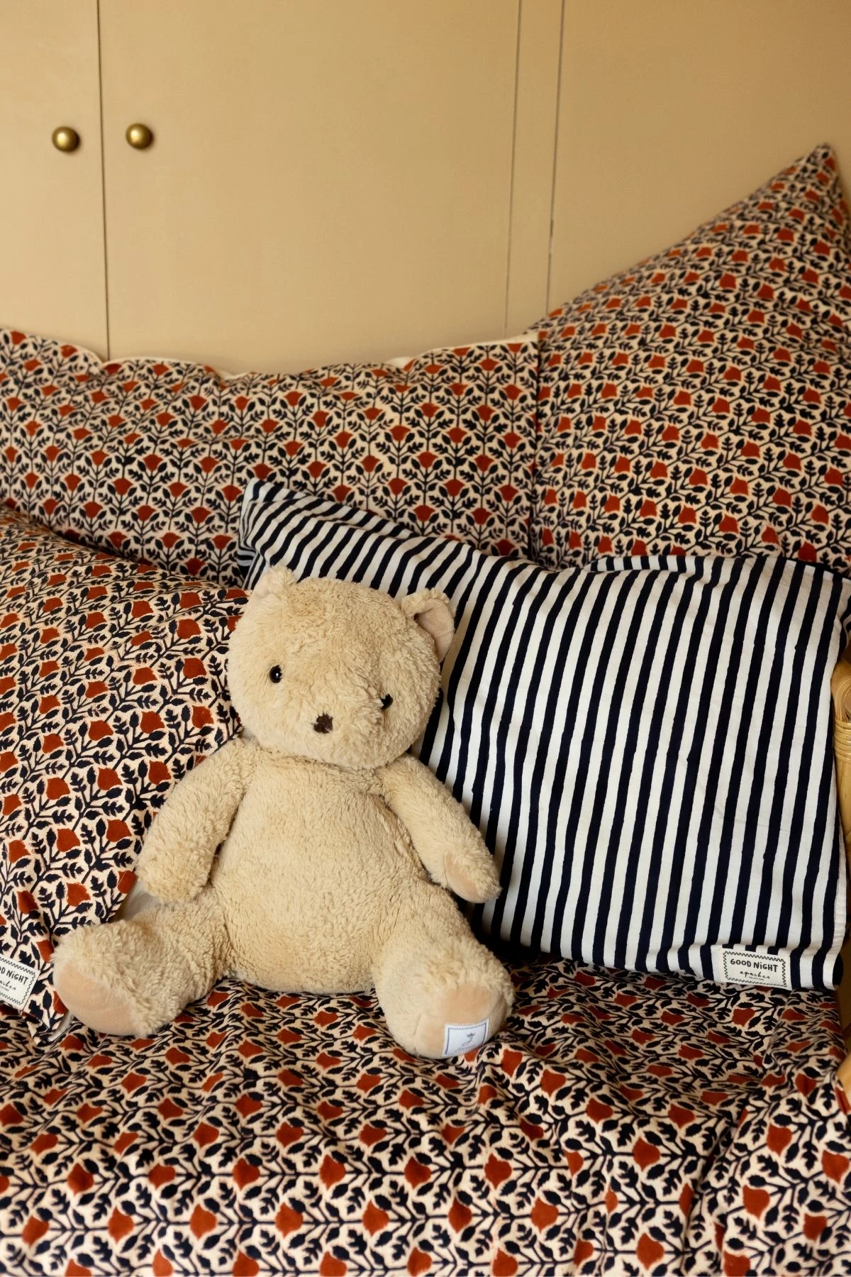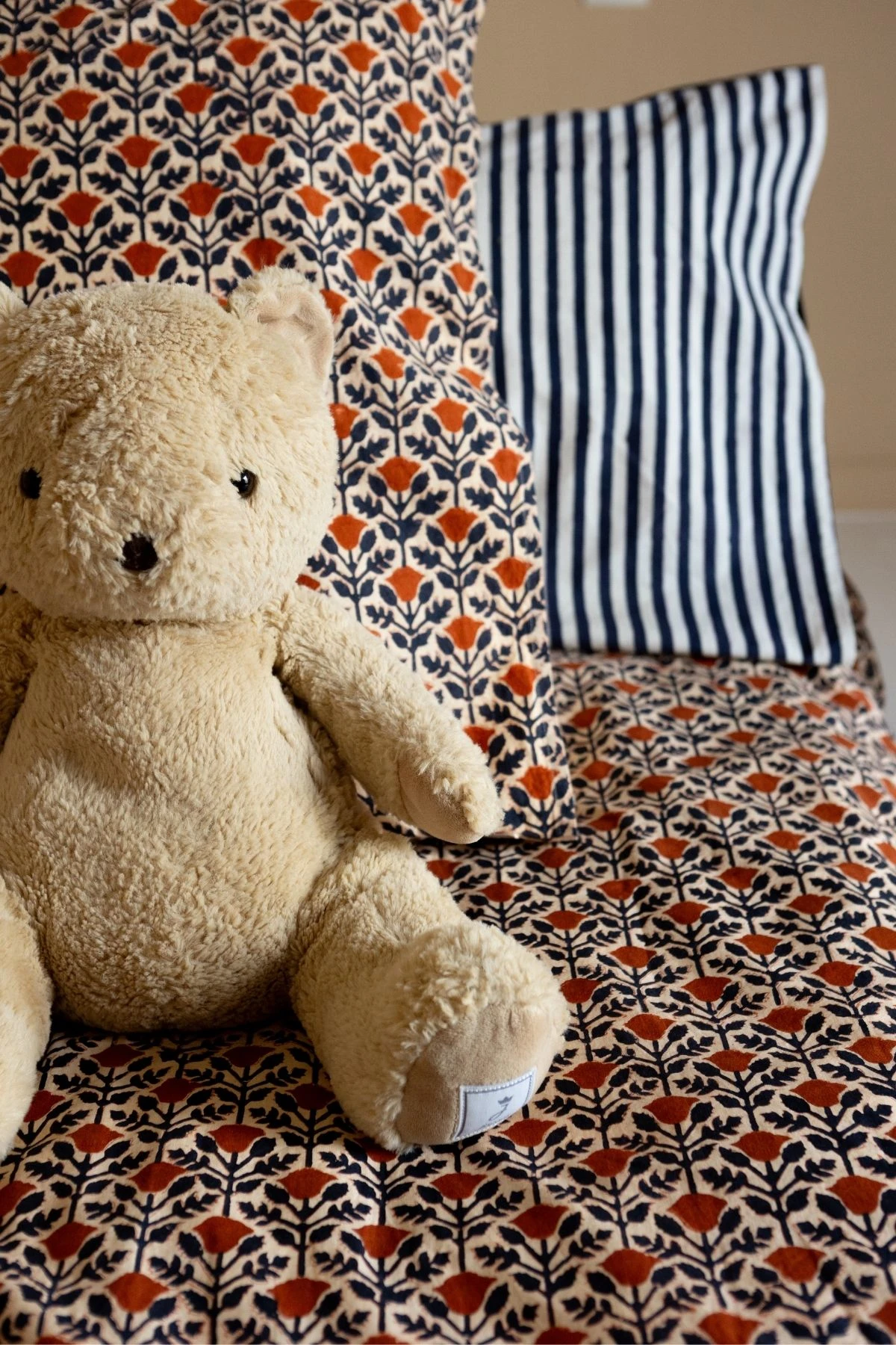 Elle est confectionnée de manière artisanale grâce à la technique du block-print. Chaque pièce est unique, cette confection manuelle peut entraîner de légères variations de couleurs d'une série à une autre et certaines "irrégularités" dont nous aimons le charme.
