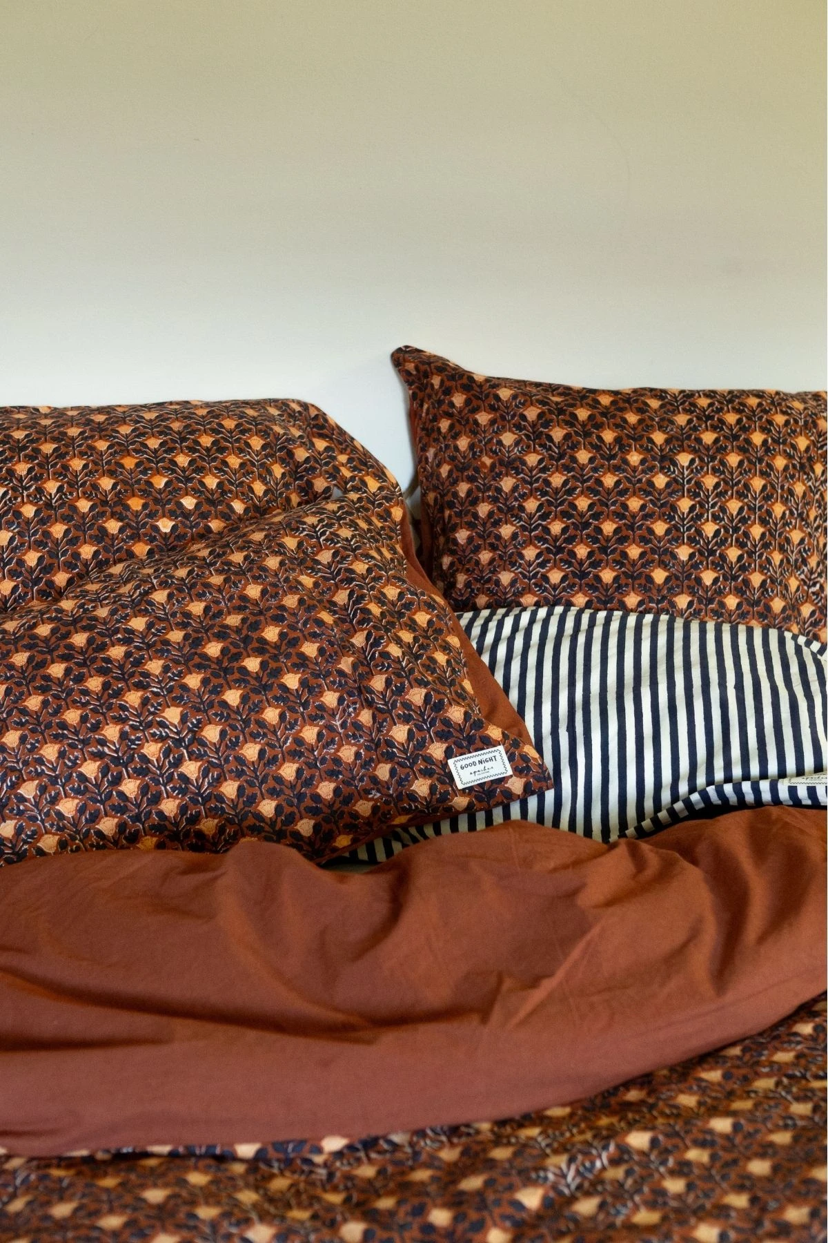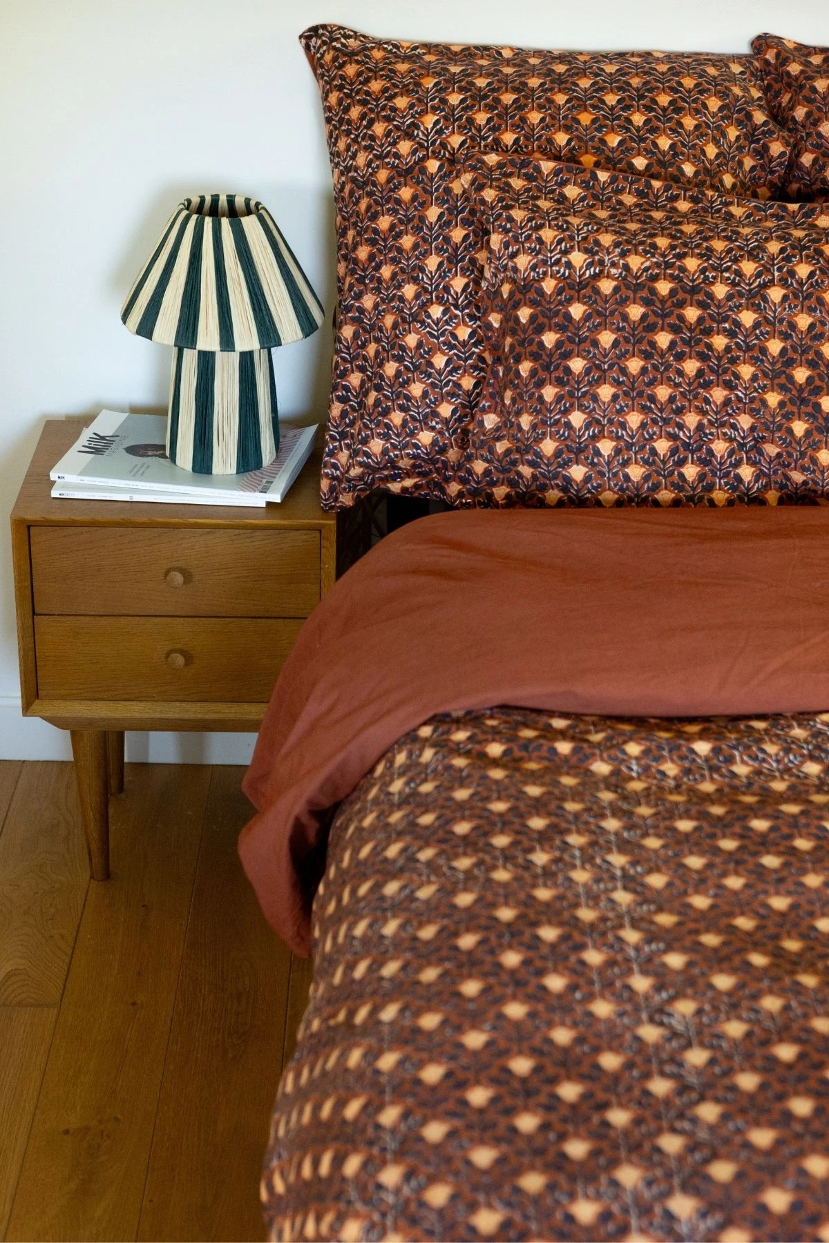 Elle est confectionnée de manière artisanale grâce à la technique du block-print. Chaque pièce est unique, cette confection manuelle peut entraîner de légères variations de couleurs d'une série à une autre et certaines "irrégularités" dont nous aimons le charme.