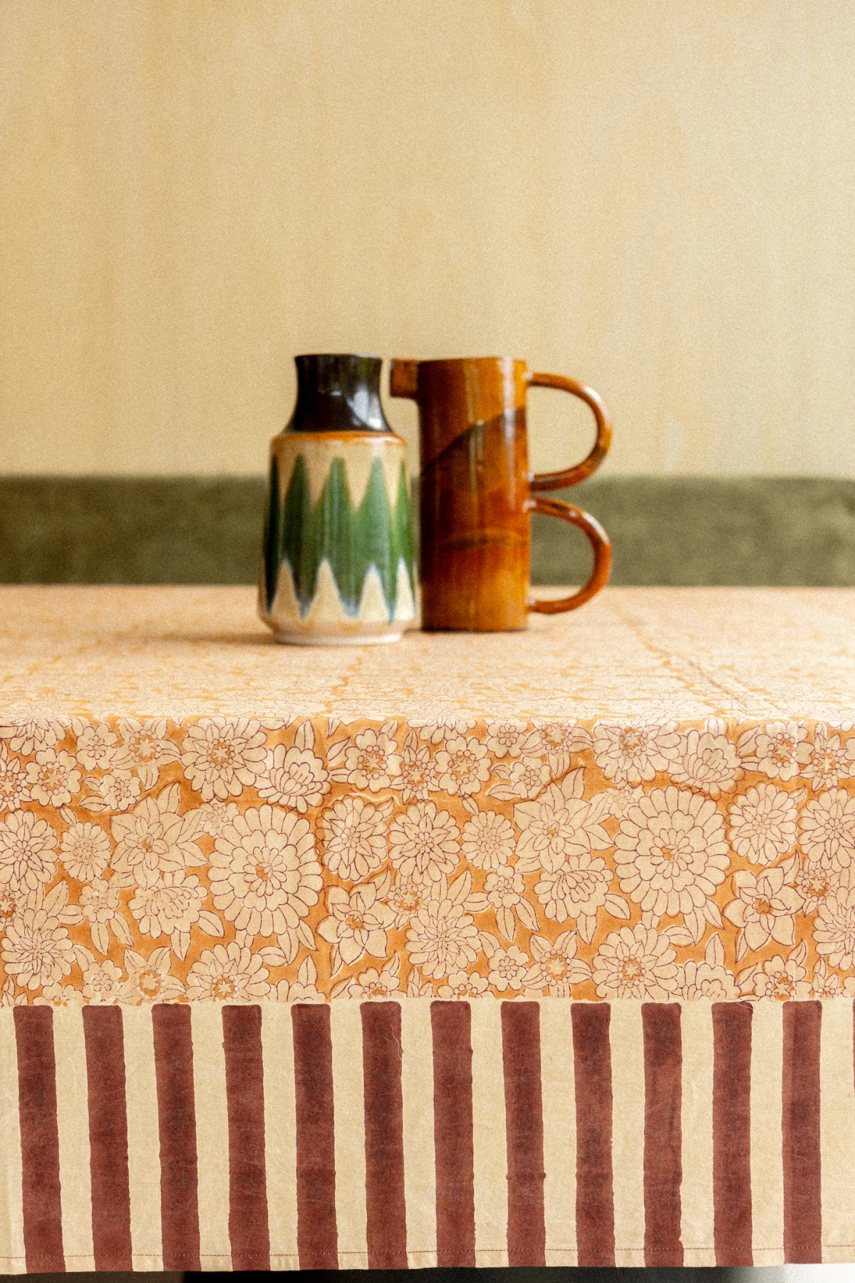 Notre nappe viendra habiller votre table, des déjeuners en famille aux dîners entre amis. Cette bordure contrastée rayée offre un tombé unique pour des tables mélangeant imprimés fleuris et graphiques, aussi singulières qu'accueillantes !