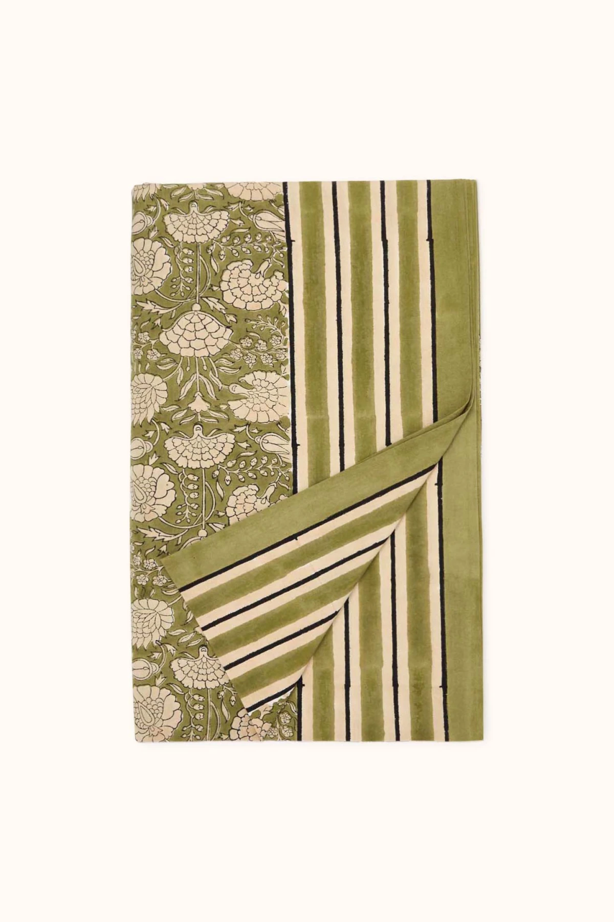 Mettez en valeur votre table lors de vos déjeuners et dîners grâce à notre nappe en coton. Cette bordure contrastée rayée offre un tombé unique pour des tables mixant fleurs indiennes et rayures, pleines de personnalité.