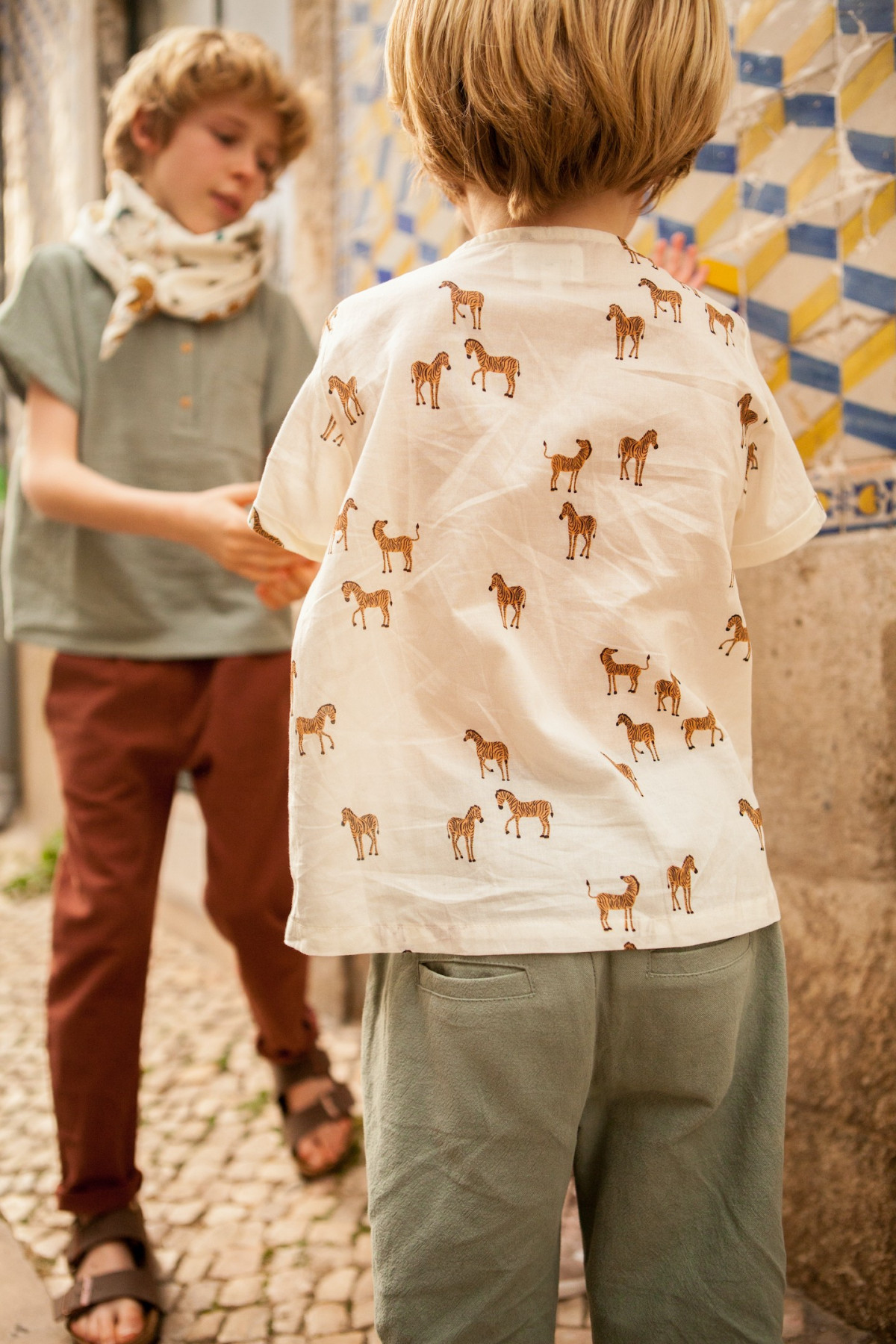 Oh joie, nos petits boys vont pouvoir avoir les bras à l’air grâce à notre blouse Mani ! Une coupe confortable et un look actuel, elle s'associe à merveille avec notre pantalon et notre short Raja, mais aussi avec le nouveau Vishnu !