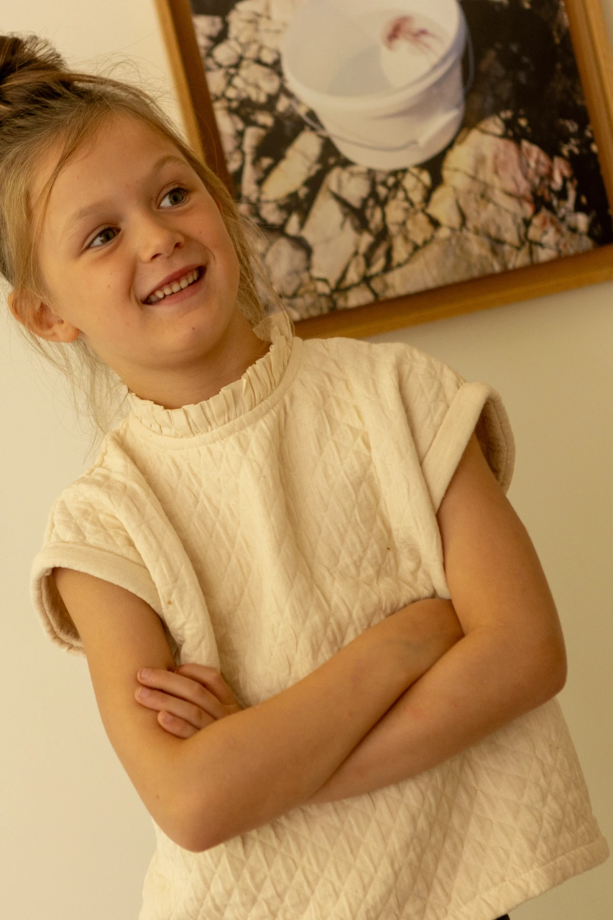 Notre blouse Kala est un must-have pour vos minis. Son petit col volanté et sa matière moelleuse offrent une touche stylée à chaque tenue.