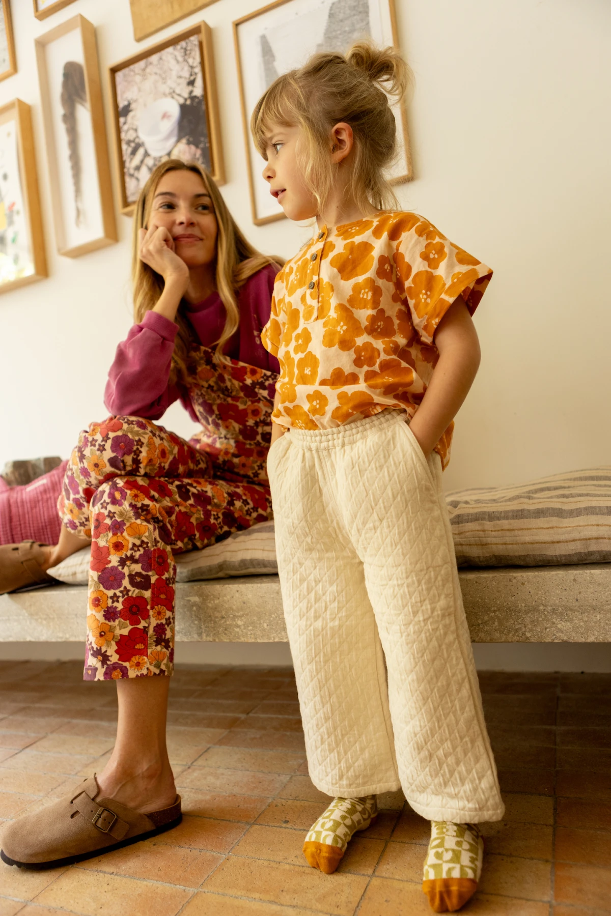 Hitam, notre pantalon matelassé sera vite adopté par les petites filles ! Facile à porter, elles pourront l'enfiler avec un tee-shirt ou avec une de nos blouses pour un look tendance et confortable.