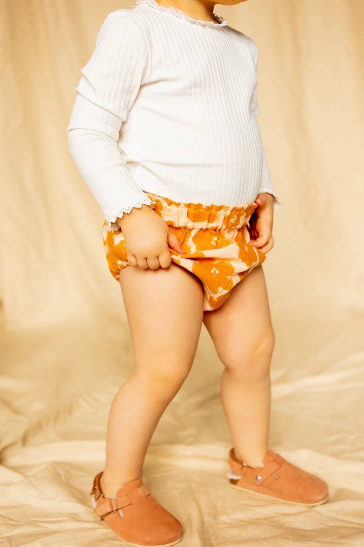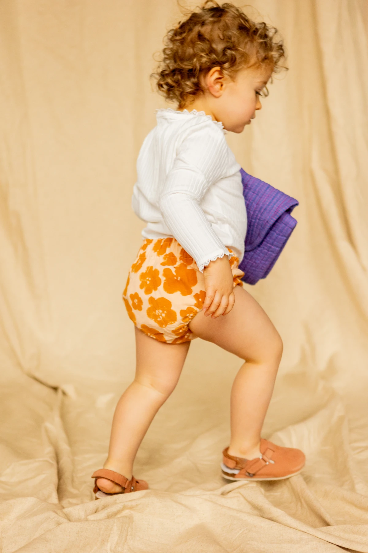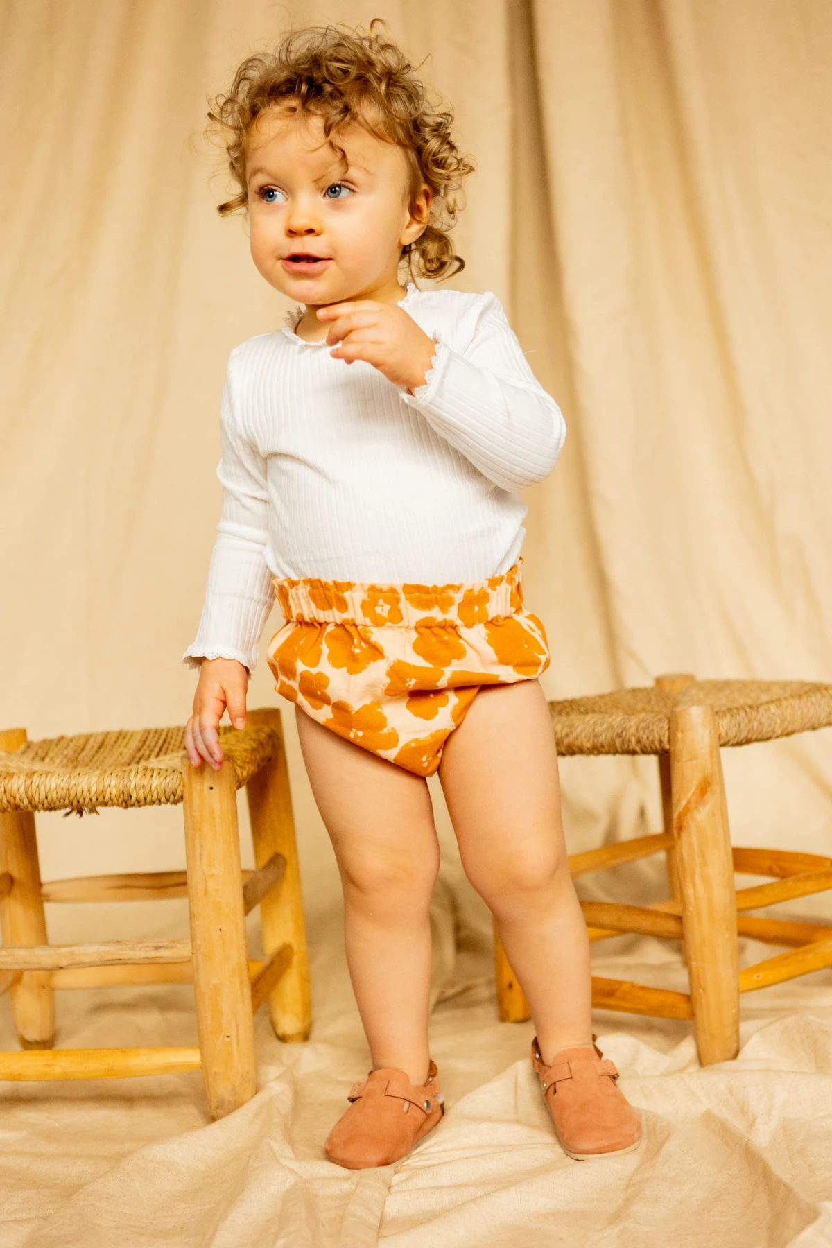 Le bloomer Tallum "Flora Bold" Orange est un incontournable des beaux jours. Confortable grâce à sa taille élastique, cette culotte bouffante se porte facilement avec une petite blouse ou un sweat pour un look stylé chez les minis !