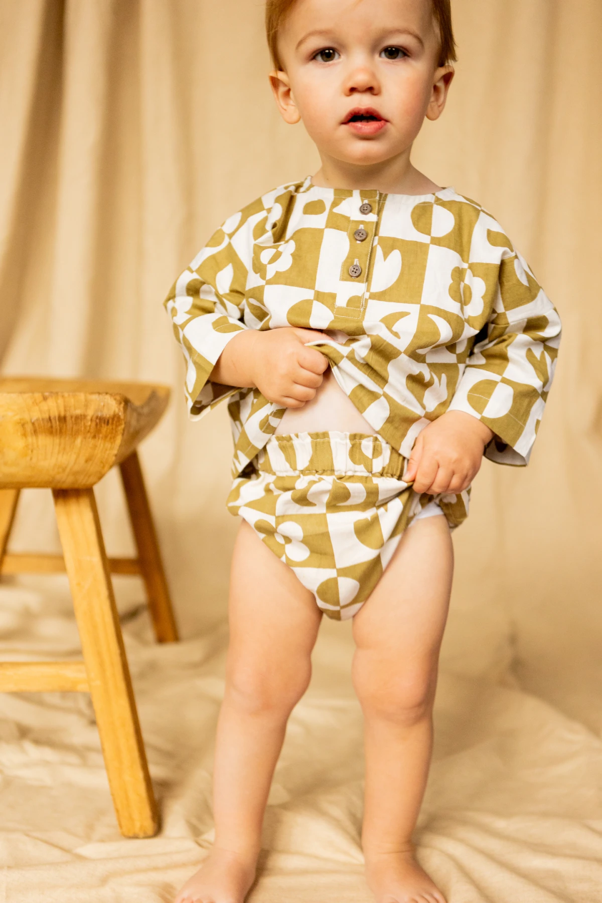 Le bloomer Tallum "Damier" Tobacco est un incontournable des beaux jours. Confortable grâce à sa taille élastique, cette culotte bouffante se porte facilement avec une petite blouse ou un sweat pour un look stylé chez les minis !