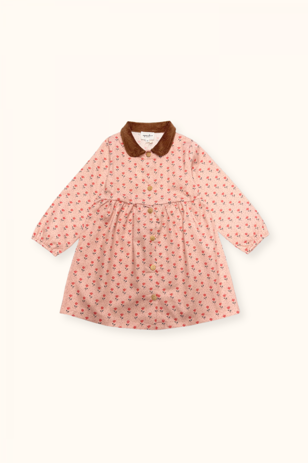 Notre robe Neïla est si facile à porter : un empiècement haut, un élastique souple aux poignets, un boutonnage en bois et un adorable col en fausse fourrure ou velours pour un style résolument moderne !