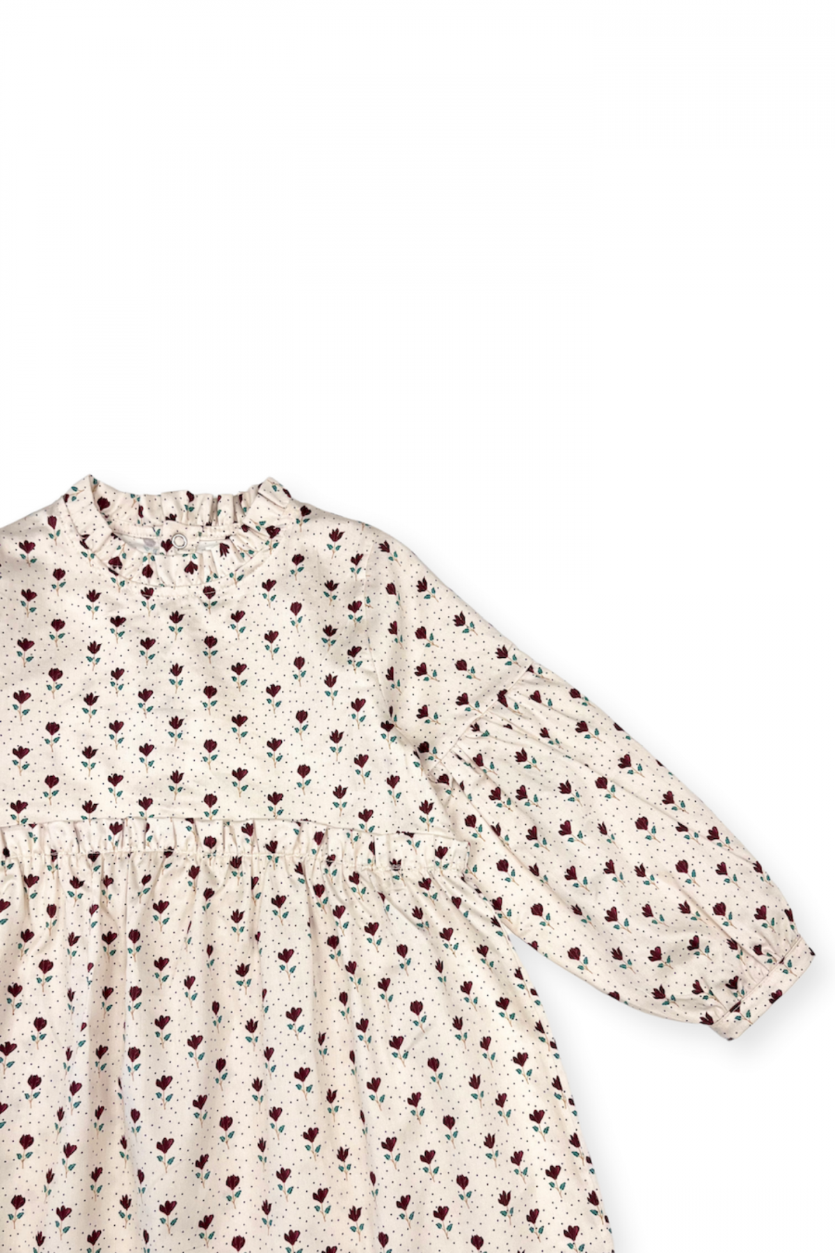 Ultra confortable et facile à porter, Sanjana sera la robe parfaite pour cet hiver ! Col monté, manches ballons, fermeture dos par des boutons et mini volants à la taille.