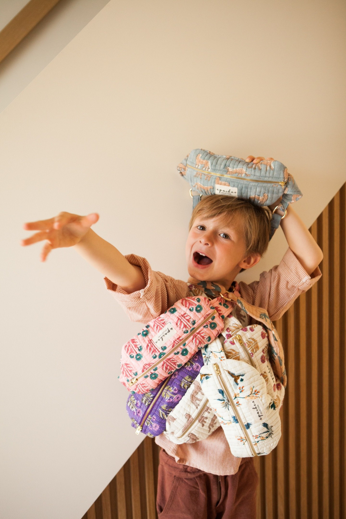 Découvrez notre version mini du sac banane en coton matelassé ! Un accessoire idéal pour vos kids qui pourront ranger leurs petites affaires, les transporter facilement et copier les plus grands ! Disponible en 3 tailles et dans une multitude d'imprimés, toute la famille pourra porter sa version préférée !