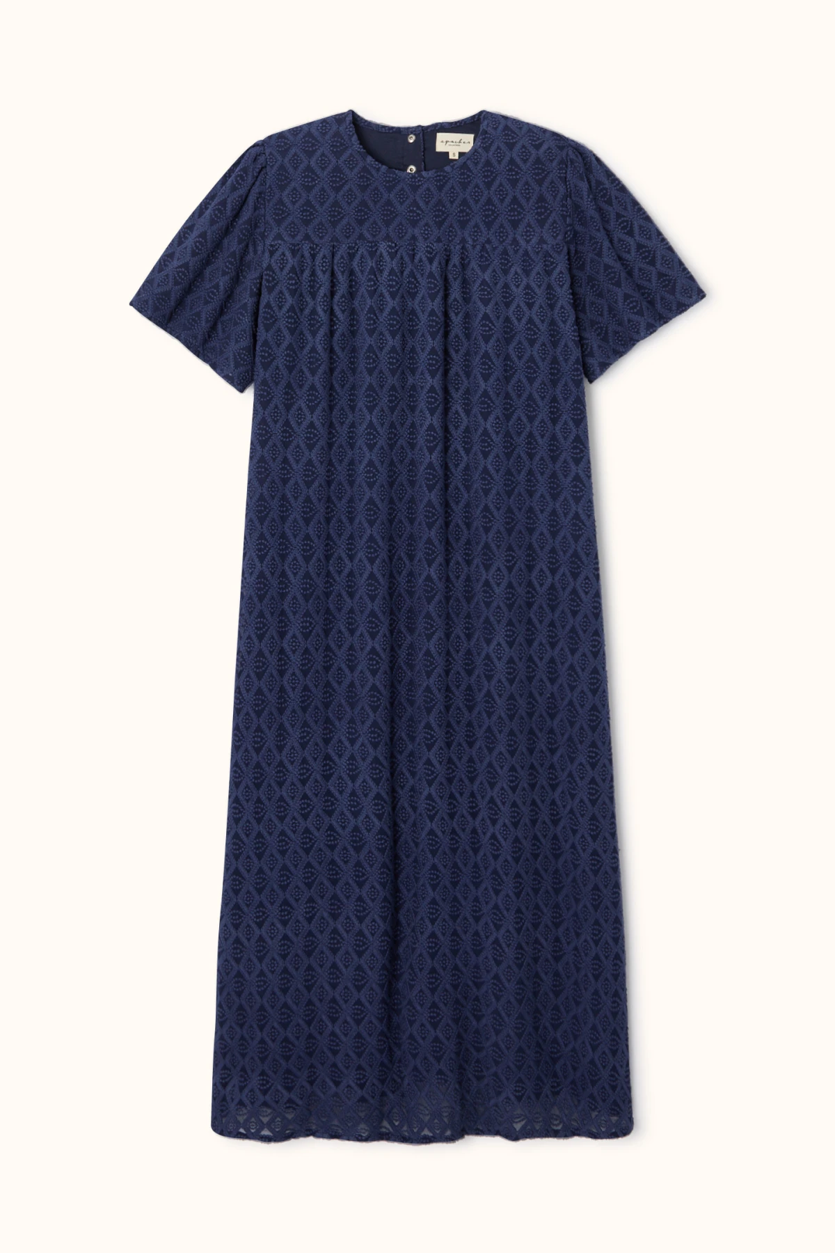 Notre longue robe Jyoti en dentelle brodée vous donnera un style raffiné. Avec ses manches ballons oversize et sa coupe fluide, elle apporte une touche d'élégance tout en restant facile à porter au quotidien et idéale pour des occasions spéciales. On l'aime pour son style épuré et moderne.