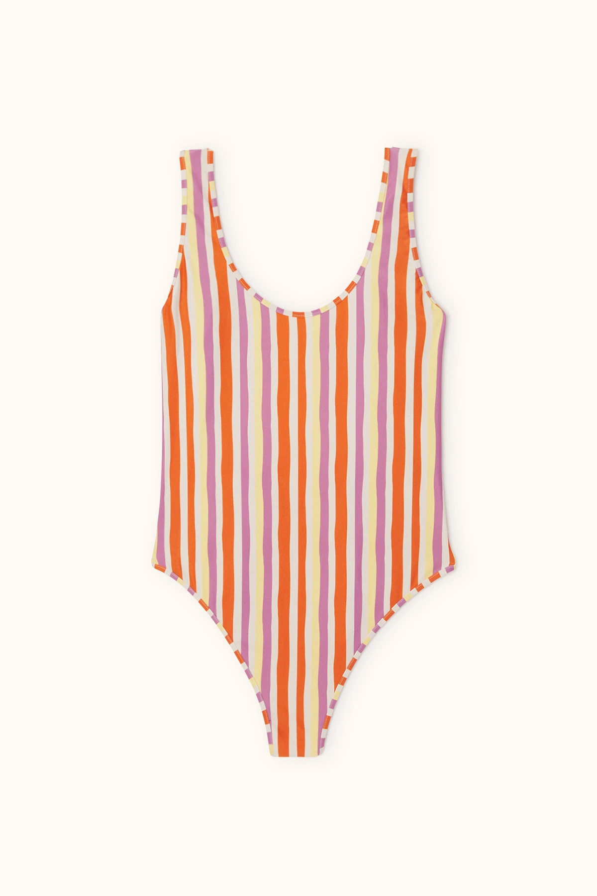 Optez pour un look chic et intemporel avec le maillot de bain NAVY une pièce rayé. Son décolleté dans le dos et ses bretelles ajustées subliment la silhouette, tandis que sa protection anti-UV assure un confort optimal sous le soleil. Un essentiel alliant allure et praticité pour vos journées plage.🩱