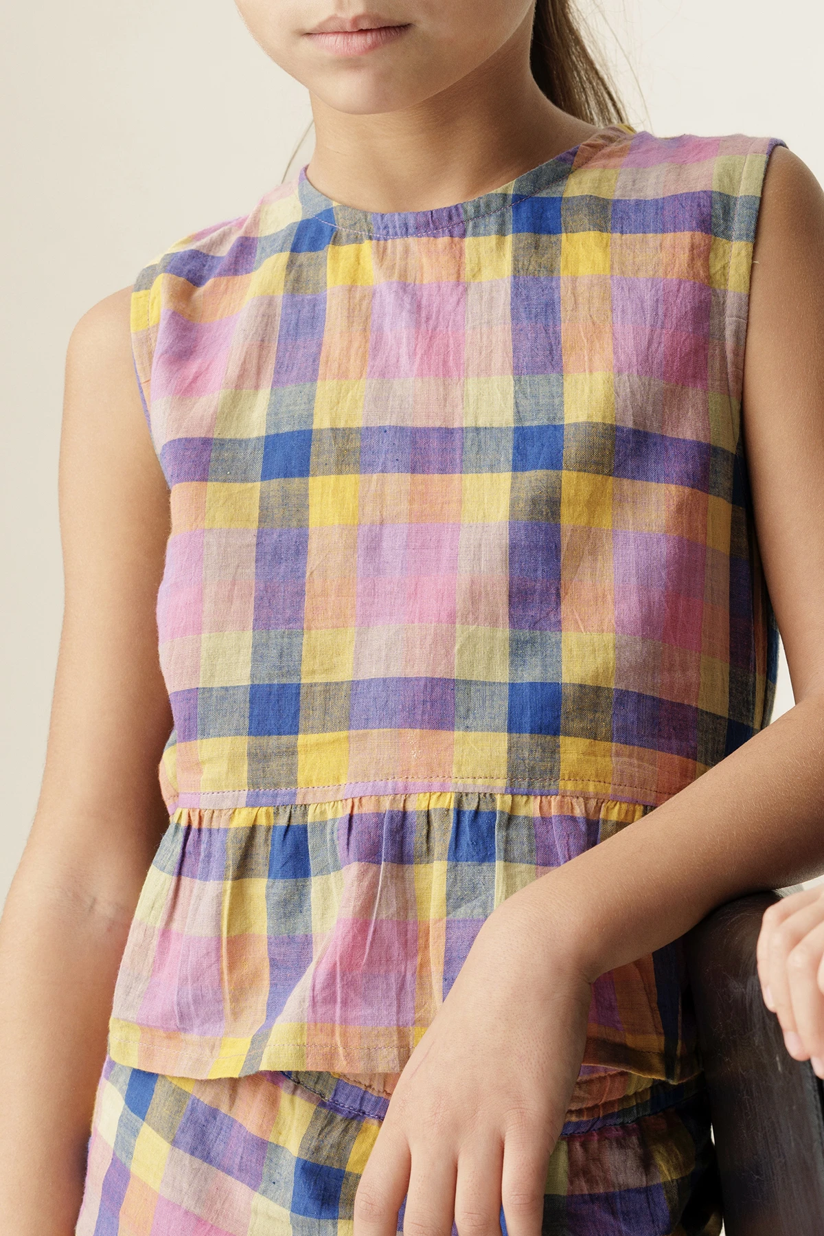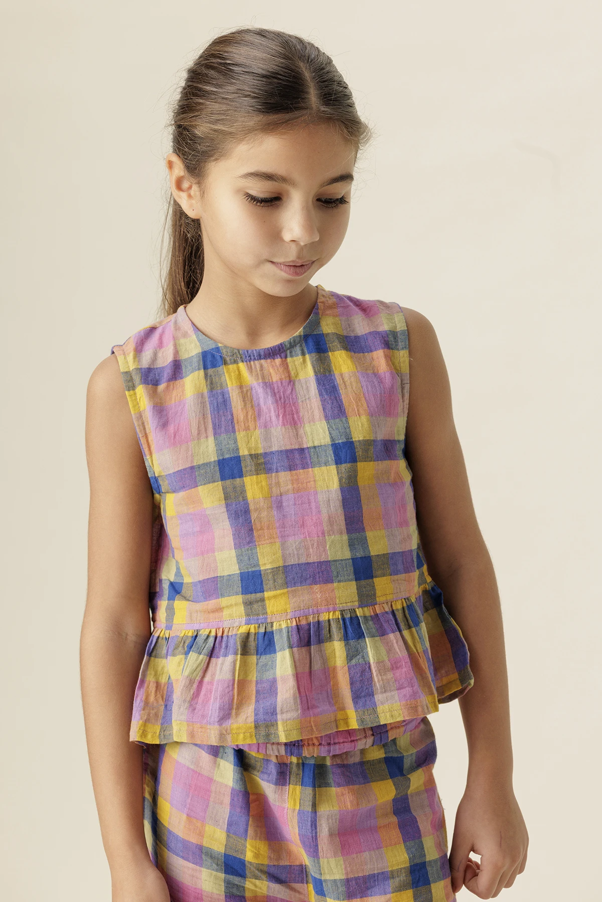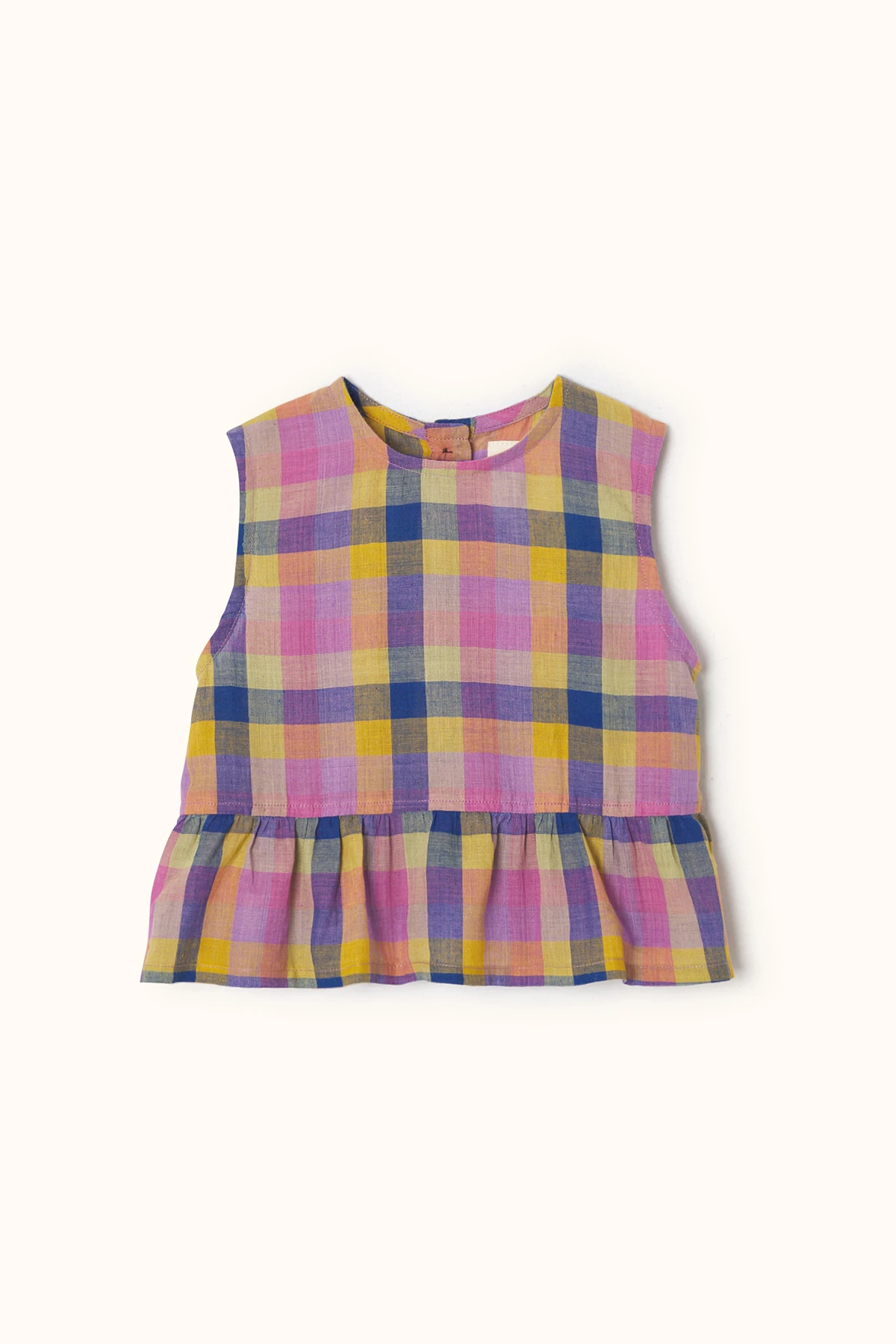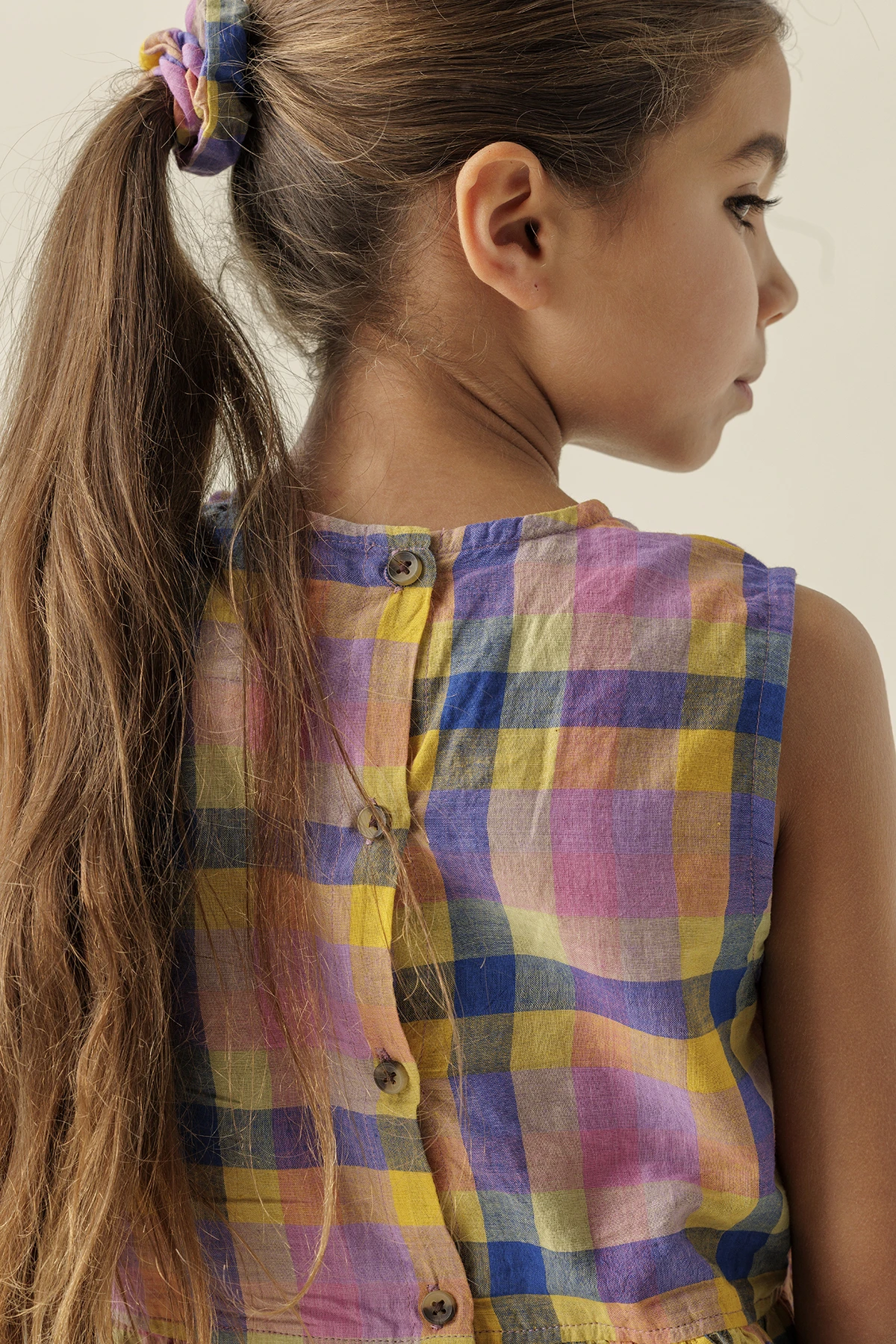Optez pour le haut BAILA sans manches en khadi de coton, élégant et léger. Sa coupe droite se termine par un bas volanté froncé pour une touche féminine, tandis que l’encolure ronde apporte douceur et confort. Fermeture au dos par jolis boutons en bois, pour un style raffiné et authentique.