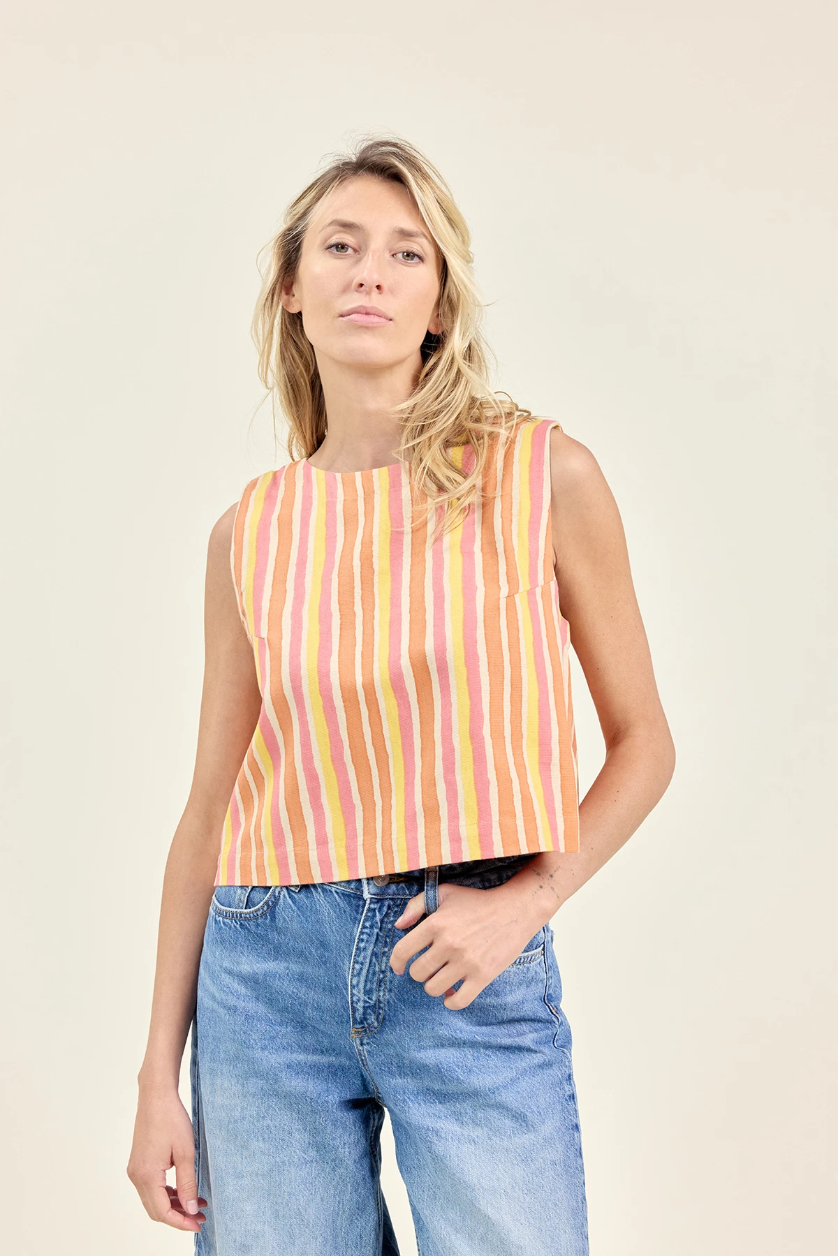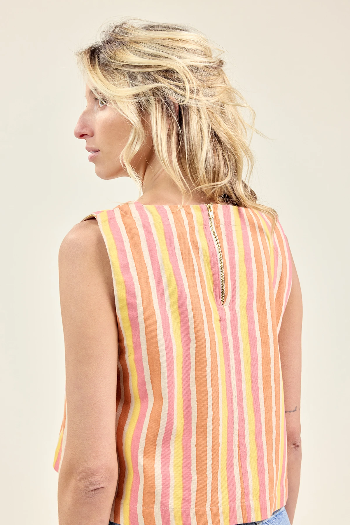 Le top HEMI en coton épais allie style et élégance avec sa coupe trapèze et son encolure arrondie. Sa matière structurée assure un joli maintien, tandis que la fermeture zippée dorée au dos facilite l’enfilage. Un essentiel chic et confortable pour sublimer toutes vos tenues.