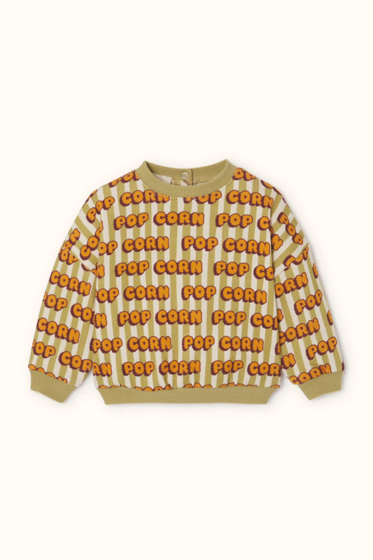 Voici le sweat Anahita imprimé "Pop Corn" Olive, un incontournable pour les bébés stylés au style décontracté ! Confortable avec ce coton molletonné et facile à enfiler grâce à ses pressions dans le haut du dos, ce sweat loose s'associera parfaitement au legging Jayo du même imprimé.